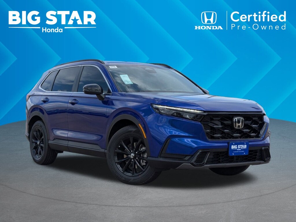Certified. Canyon River Blue Metallic 2025 Honda CR-V Hybrid Sport FWD eCVT 2.0L I4 DOHC 16V **CARFAX ONE OWNER**, CLEAN CARFAX!, LOCAL TRADE!, NON SMOKING VEHICLE!, ALL Ken Garff Customers receive complimentary Garff Care!!, Get you some fuel when you are in trouble!!!, Garff Care can jump a dead battery and will unlock your vehicle if you find yourself locked out!!, 4-Wheel Disc Brakes, 6 Speakers, ABS brakes, Adaptive Cruise Control: Adaptive Cruise Control (ACC) with Low-Speed Follow, Air Conditioning, Apple CarPlay/Android Auto, Auto High-beam Headlights, Automatic temperature control, Blind Spot Information (BSI) System warning, Brake assist, Delay-off headlights, Dual front impact airbags, Dual front side impact airbags, Electronic Stability Control, Exterior Parking Camera Rear, Four wheel independent suspension, Front anti-roll bar, Front Bucket Seats, Front Center Armrest, Front dual zone A/C, Fully automatic headlights, Heated Front Bucket Seats, Heated front seats, Knee airbag, Low tire pressure warning, Occupant sensing airbag, Overhead airbag, Panic alarm, Power driver seat, Power moonroof, Power steering, Power windows, Radio data system, Radio: 240-Watt AM/FM Audio System, Rear anti-roll bar, Rear window defroster, Remote keyless entry, Security system, Speed control, Speed-sensing steering, Steering wheel mounted audio controls, Traction control, Wheels: 18 Berlina Black Alloy.43/36 City/Highway MPG