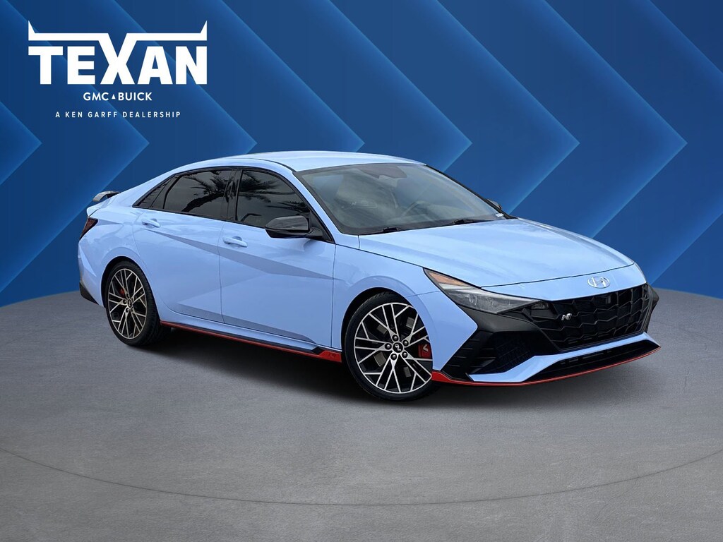 Recent Arrival! 19 x 8.0 Aluminum Alloy Wheels, 4-Wheel Disc Brakes, 8 Speakers, ABS brakes, Air Conditioning, Alloy wheels, AM/FM radio: SiriusXM, Apple CarPlay & Android Auto, Auto High-beam Headlights, Automatic temperature control, Brake assist, Bumpers: body-color, Compass, Delay-off headlights, Driver door bin, Driver vanity mirror, Dual front impact airbags, Dual front side impact airbags, Electronic Stability Control, Emergency communication system, Exterior Parking Camera Rear, First Aid Kit, Four wheel independent suspension, Front anti-roll bar, Front Bucket Seats, Front Center Armrest w/Storage, Front dual zone A/C, Front reading lights, Fully automatic headlights, Heated door mirrors, Heated front seats, Illuminated entry, Leather Shift Knob, Low tire pressure warning, N Light Heated Sport Bucket Seats, Navigation System, Occupant sensing airbag, Option Group 01, Outside temperature display, Overhead airbag, Panic alarm, Passenger door bin, Passenger vanity mirror, Power door mirrors, Power steering, Power windows, Premium Cloth w/Leather & Microsuede Seat Trim, Radio: Bose AM/FM/HD/SiriusXM Audio System, Rear window defroster, Remote keyless entry, Security system, Speed control, Speed-sensing steering, Spoiler, Steering wheel mounted audio controls, Tachometer, Telescoping steering wheel, Tilt steering wheel, Traction control, Trip computer, Turn signal indicator mirrors, Variably intermittent wipers.Texan GMC Buick is excited to offer this wonderful-looking 2022 Hyundai Elantra N. FWD Performance Blue22/31 City/Highway MPGService Loaners...Free WiFi.....Business Center....Roadside Assistance...All Included!! Our Mission: To be the most esteemed automotive group in the eyes of our employees, customers, and partners. Our Promise: We listen and provide a trusted, easy, and enjoyable experience. Our Philosophy: We create lifetime customers. Advertised Prices do not include any dealer installed options and advertised prices exclude leases.