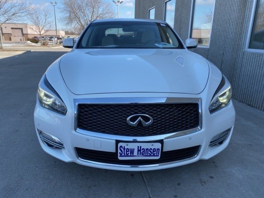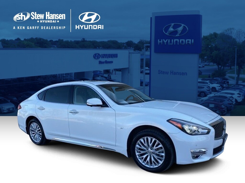 Moonlight White 2015 INFINITI Q70L 3.7X AWD 7-Speed Automatic 3.7L V6 DOHC 24V VVEL AWD, Leather, Like New!!, CARFAX ONE OWNER, LOW LOW MILES!!!!.STEW HANSEN HYUNDAI UPFRONT PRICING MEANS NO HASSLE NO HAGGLE NO SURPRISES, JUST GREAT DEALS AND SUPER SERVICE. Recent Arrival!STEW HANSEN HYUNDAI UPFRONT PRICING MEANS NO HASSLE NO HAGGLE NO SURPRISES, JUST GREAT DEALS AND SUPER SERVICE. PLEASE CALL OR STOP BY AND SEE WHY WE ARE ONE OF THE FASTEST GROWING DEALERS IN ALL OF THE MIDWEST.Reviews: * Responsive steering and all-wheel drive make handling the 2015 INFINITI Q70 a breeze. The regular wheelbase is a little jittery at speeds but the long-wheelbase model sorts all of that out. Source: KBB.com * Revel in the thrill of inspiration powerfully, marvelously realized. Every time you sit behind the wheel of the Q70, you'll experience exhilaration as a potent, desirable and eternally new emotion. You'll find it in the passion INFINITI polishes into every curve and stitch into every seam, immersing you in comfort and sophistication. You'll feel it in the power of either the 5.6L V8 or 330hp 3.7L V6, the electric motor in Hybrid model paired to a V6 gives a 31 mpg EPA combined rating with 360hp. You'll know it for the world's first Blind Spot Intervention System and other progressive technologies such as Intelligent All-Wheel Drive, Active Noise Control, and up to the date traffic and weather information. As you approach the Q70, it senses your I-Key and responds with the radiant glow of sequenced exterior and interior lights. Each emits a soft, ambient glow to welcome you back to the warm, secure cabin. To make your entrance as hospitable as possible, the enhanced I-Key will also remember driver's seat, steering wheel, and side-view mirror memory positions, and the last used audio, climate control, and navigation system settings (if so equipped). The Q70's Sports Package provides performance enhancements that heighten the driving experience. 4-Wheel Active Steer and sport-tuned suspension provide agile response and handling. Solid magnesium paddle shifters maximize feedback while robust sport brakes improve stopping power. Aggressive front fascia and grille visually express performance and racing-inspired, deep-bolstered seats cradle the driver making the Q70 more inspiring than your typical sedan. The Q70L model also adds nearly 6 inches of additional legroom in the rear seat adding comfort for your passengers. Source: The Manufacturer Summary