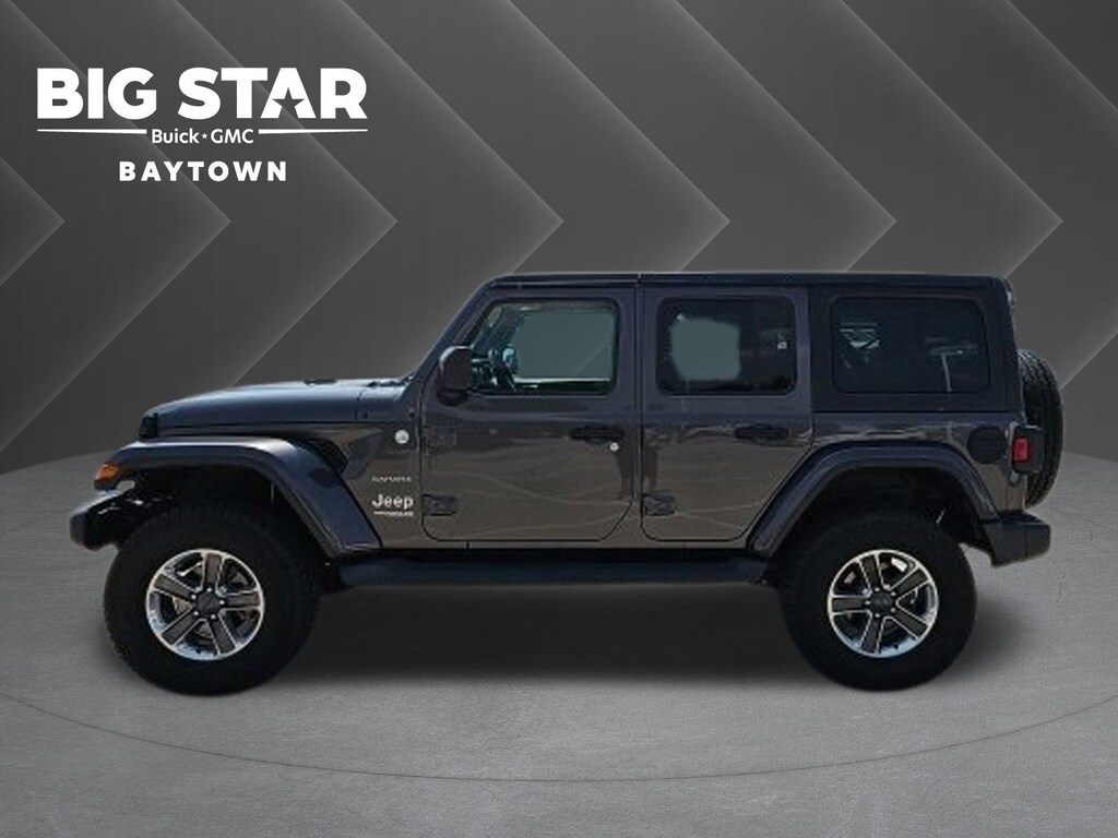 120 Point Safety Inspection, 18 WHEELS, 3.45 Rear Axle Ratio, 4-Wheel Disc Brakes, 8 Speakers, ABS brakes, Air Conditioning, Alloy wheels, AM/FM radio: SiriusXM, Apple CarPlay/Android Auto, Automatic temperature control, Black 3-Piece Hard Top, BLUETOOTH / HANDSFREE, Brake assist, CLEAN CARFAX!, Cloth Low-Back Bucket Seats, Compass, Delay-off headlights, Driver door bin, Driver vanity mirror, Dual front impact airbags, Dual front side impact airbags, Electronic Stability Control, Freedom Panel Storage Bag, Front anti-roll bar, Front Bucket Seats, Front Center Armrest w/Storage, Front dual zone A/C, Front fog lights, Front reading lights, Fully automatic headlights, Garage door transmitter, Heated door mirrors, Heavy Duty Suspension w/Gas Shocks, Illuminated entry, Integrated roll-over protection, Leather steering wheel, LOCAL TRADE IN!, Low tire pressure warning, Manufacturer's Statement of Origin (DISC), No Soft Top, NON SMOKER VEHICLE, Non-Lock Fuel Cap w/o Discriminator, Occupant sensing airbag, Outside temperature display, Panic alarm, ParkView Rear Back-Up Camera, Passenger door bin, Passenger vanity mirror, Power door mirrors, Power steering, Power windows, PROFESSIONALLY DETAILED FOR DELIVERY!, Quick Order Package 28G, Radio data system, Radio: Uconnect 4 w/7 Display, Rear anti-roll bar, Rear reading lights, Rear Window Defroster, Rear Window Wiper/Washer, Remote keyless entry, Security system, Speed control, Split folding rear seat, Steering wheel mounted audio controls, SUPER LOW MILES!, Tachometer, Telescoping steering wheel, Tilt steering wheel, Traction control, Trip computer, Variably intermittent wipers, Voltmeter, Wheels: 18 x 7.5 Polished w/Gray Spokes. Clean CARFAX. Certified.Big Star Buick GMC is delighted to offer this gorgeous-looking and fun 2019 Jeep Wrangler. Unlimited Sahara 4WD Granite Crystal Metallic ClearcoatWhy should you buy from Big Star GMC Buick? Our unmatched service and diverse New and Used Buick, GMC, Cars and Trucks inventory have set us apart as the preferred dealer in Baytown. Visit us today to discover why we have the best reputation in the Baytown area. Advertised Prices do not include any dealer installed options and advertised prices exclude leases.