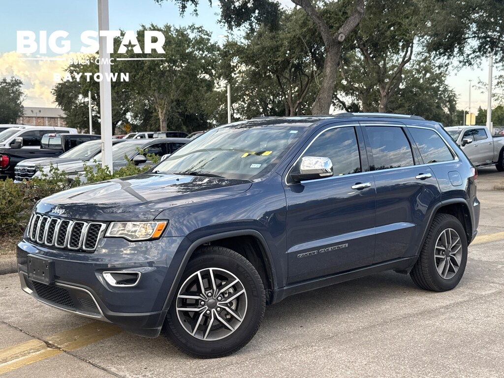1-Year SiriusXM Guardian Trial, 120 Point Safety Inspection, 18 WHEELS, 3.27 Rear Axle Ratio, 4-Wheel Disc Brakes, 4G LTE Wi-Fi Hot Spot, 6 Speakers, 8.4 Touchscreen Display, ABS brakes, Air Conditioning, Alloy wheels, AM/FM radio: SiriusXM, Anti-whiplash front head restraints, Apple CarPlay, Apple CarPlay/Android Auto, Audio memory, Auto-dimming door mirrors, Auto-dimming Rear-View mirror, Automatic temperature control, BLUETOOTH / HANDSFREE, Brake assist, Bumpers: body-color, CLEAN CARFAX!, Compass, Delay-off headlights, Disassociated Touchscreen Display, Driver door bin, Driver vanity mirror, Dual front impact airbags, Dual front side impact airbags, Eco Suspension I, Electronic Stability Control, Emergency communication system: SiriusXM Guardian, Four wheel independent suspension, Front anti-roll bar, Front Bucket Seats, Front Center Armrest w/Storage, Front dual zone A/C, Front fog lights, Front License Plate Bracket, Front reading lights, Fully automatic headlights, Garage door transmitter, Google Android Auto, GPS Antenna Input, GPS Navigation, HD Radio, Heated door mirrors, Heated front seats, Heated steering wheel, Illuminated entry, Integrated Center Stack Radio, Integrated Voice Command w/Bluetooth, Knee airbag, Leather Shift Knob, Leather Trimmed Bucket Seats, LOCAL TRADE IN!, Low tire pressure warning, Memory seat, NAVIGATION, Navigation System, NON SMOKER VEHICLE, Occupant sensing airbag, Outside temperature display, Overhead airbag, Overhead console, Panic alarm, Passenger door bin, Passenger vanity mirror, Power door mirrors, Power driver seat, Power Liftgate, Power moonroof, Power passenger seat, Power steering, Power windows, PROFESSIONALLY DETAILED FOR DELIVERY!, Quick Order Package 2BH, Radio data system, Radio: Uconnect 4C Nav w/8.4 Display, Rear anti-roll bar, Rear reading lights, Rear seat center armrest, Rear window defroster, Rear window wiper, Remote keyless entry, Security system, SiriusXM Satellite Radio, SiriusXM Traffic Plus, SiriusXM Travel Link, Speed control, Speed-sensing steering, Speed-Sensitive Wipers, Split folding rear seat, Spoiler, Steering wheel mounted audio controls, SUNROOF/MOONROOF, SUPER LOW MILES!, Tachometer, Telescoping steering wheel, Tilt steering wheel, Traction control, Trip computer, Turn signal indicator mirrors, USB Host Flip, Variably intermittent wipers, Wheels: 18 x 8.0 Tech Gray Aluminum (DISC), Wheels: 18 x 8.0 Tech Gray Diamond Cut. Certified.Big Star Buick GMC is honored to offer this good-looking 2020 Jeep Grand Cherokee. Limited RWD Pacific Blue Clearcoat CARFAX One-Owner.Odometer is 16440 miles below market average!19/26 City/Highway MPGWhy should you buy from Big Star GMC Buick? Our unmatched service and diverse New and Used Buick, GMC, Cars and Trucks inventory have set us apart as the preferred dealer in Baytown. Visit us today to discover why we have the best reputation in the Baytown area. Advertised Prices do not include any dealer installed options and advertised prices exclude leases.