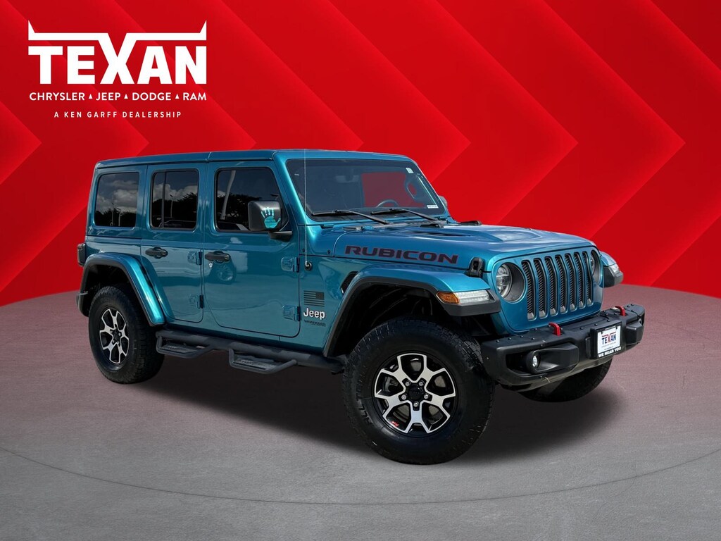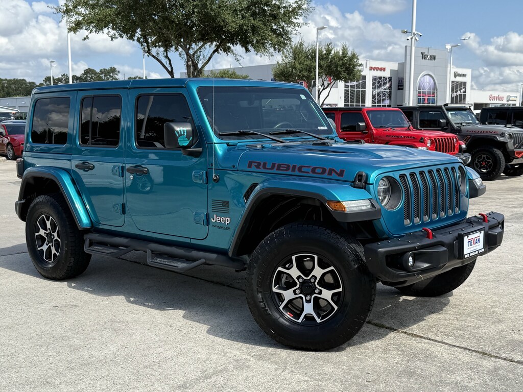 Clean CarFax!, Clean Vehicle History, Non Smoker Vehicle, LOCAL TRADE, ALL VEHICLES UNDERGO A 115 POINT SAFETY INSPECTION, 1-Year SiriusXM Guardian Trial, 240 Amp Alternator, 4-Wheel Disc Brakes, 4.10 Rear Axle Ratio, 4G LTE Wi-Fi Hot Spot, 5-Year SiriusXM Traffic Service, 5-Year SiriusXM Travel Link Service, 7 & 4 Pin Wiring Harness, 700 Amp Maintenance Free Battery, 8 Speakers, 8.4 Radio & Premium Audio Group, 8.4 Touchscreen Display, ABS brakes, Alpine Premium Audio System, AM/FM radio: SiriusXM, Apple CarPlay/Android Auto, Auto-Dimming Rear-View Mirror, Automatic temperature control, Aux Battery, Auxiliary Switches, Blind Spot & Cross Path Detection, Body Color 3-Piece Hard Top, Body Color Fender Flares, Brake assist, Class II Receiver Hitch, Cold Weather Group, Daytime Running Lamps LED Accents, Delay-off headlights, Driver vanity mirror, Dual front impact airbags, Dual front side impact airbags, Electronic Stability Control, Emergency/Assistance Call, For Details, Visit DriveUconnect.com, Front anti-roll bar, Front Bucket Seats, Front Center Armrest w/Storage, Front dual zone A/C, Front fog lights, Front LED Fog Lamps, Front reading lights, Fully automatic headlights, Garage door transmitter, GPS Navigation, HD Radio, Heated door mirrors, Heated Front Seats, Heated Steering Wheel, Illuminated entry, Integrated roll-over protection, LED Lighting Group, LED Reflector Headlamps, LED Taillamps, Low tire pressure warning, Occupant sensing airbag, Outside temperature display, Panic alarm, ParkSense Rear Park Assist System, ParkView Rear Back-Up Camera, Passenger door bin, Passenger vanity mirror, Performance Suspension, Power door mirrors, Premium Cloth Low-Back Bucket Seats, Quick Order Package 22R, Radio: Uconnect 4C Nav w/8.4 Display, Rear anti-roll bar, Remote keyless entry, Remote Proximity Keyless Entry, Remote Start System, Safety Group, Security system, SiriusXM Traffic Plus, SiriusXM Travel Link, Split folding rear seat, Steel Bumper Group, Steel Front Bumper, Steel Rear Bumper, Steering wheel mounted audio controls, Stop-Start Dual Battery System, Telescoping steering wheel, Traction control, Trailer Tow & HD Electrical Group, Variably intermittent wipers, Wheels: 17 x 7.5 Machined w/Black Pockets. Priced below KBB Fair Purchase Price!Odometer is 17611 miles below market average!Texan Dodge Chrysler Jeep Ram is honored to offer this beautiful-looking and fun 2020 Jeep Wrangler Unlimited Rubicon.In addition to transparent, no hassle pricing and upfront no hassle trade evaluation.....We provide an enjoyably brief and easy Sales Experience...Your Pace...Your Way....CONTACT US AT (281)359-7100 Advertised Prices do not include any dealer installed options and advertised prices exclude leases.
