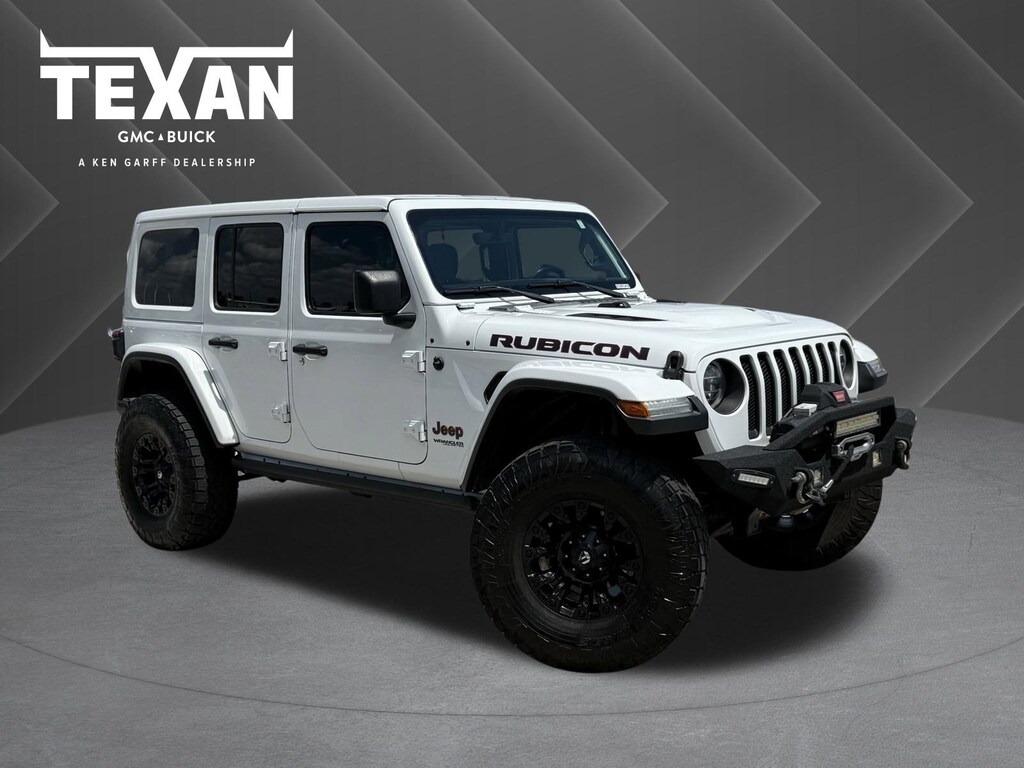 4-Wheel Disc Brakes, 4.10 Rear Axle Ratio, 5-Year SiriusXM Traffic Service, 700 Amp Maintenance Free Battery, 8 Speakers, 8.4 Radio & Premium Audio Group, ABS brakes, Air Conditioning, Alloy wheels, Alpine Premium Audio System, AM/FM radio: SiriusXM, Apple CarPlay/Android Auto, Automatic temperature control, Aux Battery, BF Goodrich Brand Tires, Body Color 3-Piece Hard Top, Body Color Fender Flares, Brake assist, Cold Weather Group, Compass, Delay-off headlights, Driver door bin, Driver vanity mirror, Dual front impact airbags, Dual front side impact airbags, Electronic Stability Control, Front anti-roll bar, Front Bucket Seats, Front Center Armrest w/Storage, Front dual zone A/C, Front fog lights, Front License Plate Bracket, Front reading lights, Fully automatic headlights, Garage door transmitter, Heated door mirrors, Heated Steering Wheel, Illuminated entry, Integrated roll-over protection, Leather steering wheel, LED Lighting Group, Low tire pressure warning, MOPAR Hardtop Headliner, Non-Lock Fuel Cap w/o Discriminator, Occupant sensing airbag, Outside temperature display, Panic alarm, ParkView Rear Back-Up Camera, Passenger door bin, Passenger vanity mirror, Performance Suspension, Power door mirrors, Power steering, Power windows, Premium Cloth Low-Back Bucket Seats, Quick Order Package 24R, Radio data system, Radio: Uconnect 4 w/7 Display, Radio: Uconnect 4C Nav w/8.4 Display, Rear anti-roll bar, Rear reading lights, Remote keyless entry, Remote Proximity Keyless Entry, Remote Start System, Safety Group, Security system, Speed control, Split folding rear seat, Steel Bumper Group, Steel Front Bumper, Steel Rear Bumper, Steering wheel mounted audio controls, Stop-Start Dual Battery System, Tachometer, Telescoping steering wheel, Tilt steering wheel, Traction control, Trailer Tow & HD Electrical Group, Trip computer, Variably intermittent wipers, Voltmeter, Wheels: 17 x 7.5 Machined w/Black Pockets.Texan GMC Buick is honored to offer this great-looking 2020 Jeep Wrangler Unlimited Rubicon. 4WD Bright White ClearcoatCertified. Odometer is 718 miles below market average!Service Loaners...Free WiFi.....Business Center....Roadside Assistance...All Included!! Our Mission: To be the most esteemed automotive group in the eyes of our employees, customers, and partners. Our Promise: We listen and provide a trusted, easy, and enjoyable experience. Our Philosophy: We create lifetime customers. Advertised Prices do not include any dealer installed options and advertised prices exclude leases.