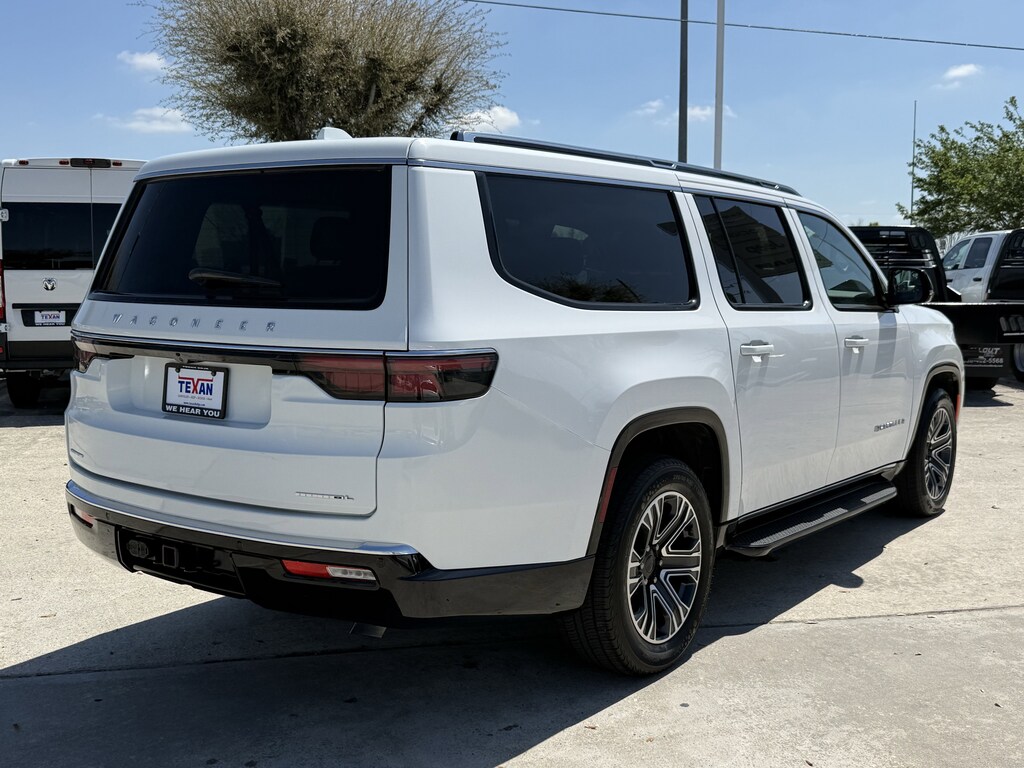 Clean CarFax!, Clean Vehicle History, Non Smoker Vehicle, LOCAL TRADE, ALL VEHICLES UNDERGO A 115 POINT SAFETY INSPECTION, Navigation System, 10 Speakers, 3.55 Rear Axle Ratio, 3rd row seats: bench, 4-Wheel Disc Brakes, ABS brakes, Adjustable pedals, Air Conditioning, Alloy wheels, AM/FM radio: SiriusXM with 360L, Anti-whiplash front head restraints, Audio memory, Auto-dimming door mirrors, Auto-dimming Rear-View mirror, Auto-leveling suspension, Automatic temperature control, Brake assist, Bumpers: body-color, Compass, Delay-off headlights, Driver door bin, Driver vanity mirror, Driver's Seat Mounted Armrest, Dual front impact airbags, Dual front side impact airbags, Electronic Stability Control, Emergency communication system: Automatic SOS Call, Exterior Parking Camera Rear, Four wheel independent suspension, Front anti-roll bar, Front Bucket Seats, Front Center Armrest w/Storage, Front dual zone A/C, Front fog lights, Front reading lights, Fully automatic headlights, Garage door transmitter, Genuine wood console insert, Genuine wood dashboard insert, Genuine wood door panel insert, Heated door mirrors, Heated front seats, Heated steering wheel, Illuminated entry, Knee airbag, Leather Trimmed Bucket Seats, Low tire pressure warning, Memory seat, Normal Duty Suspension, Occupant sensing airbag, Outside temperature display, Overhead airbag, Overhead console, Panic alarm, Passenger door bin, Passenger seat mounted armrest, Passenger vanity mirror, Pedal memory, Power adjustable front head restraints, Power door mirrors, Power driver seat, Power Liftgate, Power passenger seat, Power steering, Power windows, Quick Order Package 25J, Radio data system, Radio: Uconnect 5 Nav w/10.1 Display, Rain sensing wipers, Rear air conditioning, Rear anti-roll bar, Rear reading lights, Rear seat center armrest, Rear window defroster, Rear window wiper, Reclining 3rd row seat, Remote keyless entry, Security system, Speed control, Speed-sensing steering, Speed-Sensitive Wipers, Split folding rear seat, Steering wheel memory, Steering wheel mounted audio controls, Tachometer, Telescoping steering wheel, Tilt steering wheel, Traction control, Trip computer, Turn signal indicator mirrors, Variably intermittent wipers, Ventilated front seats, Voltmeter, Wheels: 20 x 9.0 Premium 2 Aluminum, Fully Serviced, 1-Owner, Bluetooth, Navigation System. CARFAX One-Owner. Priced below KBB Fair Purchase Price!Texan Dodge Chrysler Jeep Ram is pleased to offer this stunning 2023 Jeep Wagoneer L Series II.In addition to transparent, no hassle pricing and upfront no hassle trade evaluation.....We provide an enjoyably brief and easy Sales Experience...Your Pace...Your Way....CONTACT US AT (281)359-7100 Advertised prices exclude leases. Vehicle may or may not be equipped with vehicle protection products or accessories that are not required for purchase.