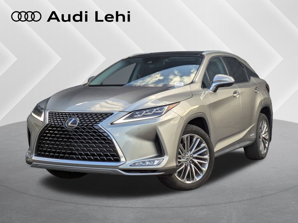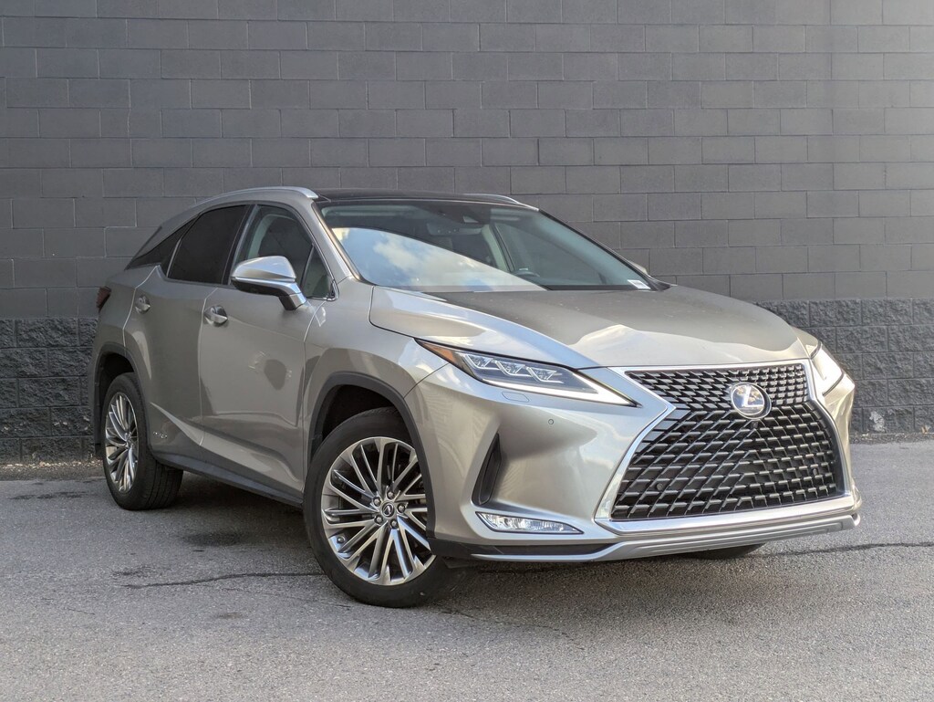 **Atomic Silver** 2022 Lexus RX 450h AWD eCVT 3.5L V6 DOHC VVT-i 24V 3.5L V6 DOHC VVT-i 24V, AWD, 18 Aluminum Wheels, 3.54 Axle Ratio, 4-Wheel Disc Brakes, 9 Speakers, ABS brakes, Air Conditioning, Alloy wheels, AM/FM radio: SiriusXM, Anti-whiplash front head restraints, Apple CarPlay/Android Auto, Auto High-beam Headlights, Auto-dimming door mirrors, Auto-dimming Rear-View mirror, Automatic temperature control, Brake assist, Bumpers: body-color, CD player, Delay-off headlights, Driver door bin, Driver vanity mirror, Dual front impact airbags, Dual front side impact airbags, Electronic Stability Control, Emergency communication system, Exterior Parking Camera Rear, Four wheel independent suspension, Front anti-roll bar, Front Bucket Seats, Front Center Armrest, Front dual zone A/C, Front reading lights, Fully automatic headlights, Garage door transmitter: HomeLink, Genuine wood console insert, Genuine wood door panel insert, Heated door mirrors, Illuminated entry, Knee airbag, Leather Shift Knob, Low tire pressure warning, NuLuxe Seat Trim, Occupant sensing airbag, Outside temperature display, Overhead airbag, Overhead console, Panic alarm, Passenger door bin, Passenger vanity mirror, Power door mirrors, Power driver seat, Power Liftgate, Power passenger seat, Power steering, Power windows, Radio data system, Radio: AM/FM/HD w/9-Speaker Premium Audio System, Rain sensing wipers, Rear anti-roll bar, Rear reading lights, Rear seat center armrest, Rear side impact airbag, Rear window defroster, Rear window wiper, Remote keyless entry, Security system, Speed control, Speed-sensing steering, Split folding rear seat, Spoiler, Steering wheel mounted audio controls, Telescoping steering wheel, Tilt steering wheel, Traction control, Trip computer, Turn signal indicator mirrors, Variably intermittent wipers, 3.5L V6 DOHC VVT-i 24V, AWD.Recent Arrival! Odometer is 14546 miles below market average! 31/28 City/Highway MPG