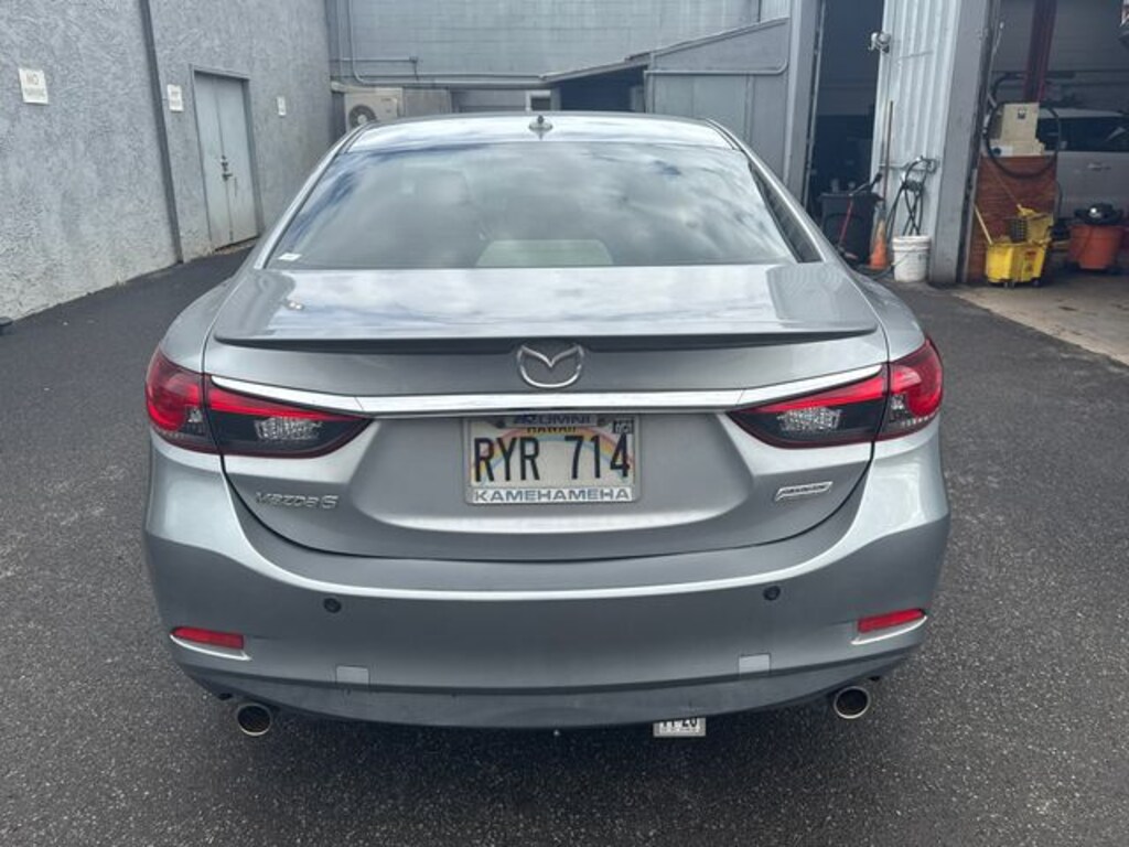 Silver 2014 Mazda Mazda6 i Grand Touring FWD 6-Speed Sport Automatic SKYACTIV®-G 2.5L I4 DOHC 16V 11 Speakers, 3 Level Heated Reclining Front Sport Bucket Seats, 4-Wheel Disc Brakes, ABS brakes, Air Conditioning, Alloy wheels, AM/FM radio: SiriusXM, Anti-whiplash front head restraints, Auto-dimming door mirrors, Auto-dimming Rear-View mirror, Automatic temperature control, Brake assist, Bumpers: body-color, CD player, Compass, Delay-off headlights, Driver door bin, Driver vanity mirror, Dual front impact airbags, Dual front side impact airbags, Electronic Stability Control, Exterior Parking Camera Rear, Four wheel independent suspension, Front anti-roll bar, Front Bucket Seats, Front Center Armrest, Front dual zone A/C, Front fog lights, Front reading lights, Fully automatic headlights, Garage door transmitter: HomeLink, Heated door mirrors, Heated front seats, High intensity discharge headlights: Bi-Xenon, Illuminated entry, Leather Seat Trim, Leather Shift Knob, Low tire pressure warning, Memory seat, Navigation System, Occupant sensing airbag, Outside temperature display, Overhead airbag, Overhead console, Panic alarm, Passenger door bin, Passenger vanity mirror, Power door mirrors, Power driver seat, Power moonroof, Power passenger seat, Power steering, Power windows, Radio data system, Radio: AM/FM/CD/MP3/AUX BOSE 11-Speaker & HD Radio, Rain sensing wipers, Rear anti-roll bar, Rear reading lights, Rear seat center armrest, Rear window defroster, Remote keyless entry, Security system, Speed control, Speed-sensing steering, Split folding rear seat, Spoiler, Steering wheel mounted audio controls, Tachometer, Telescoping steering wheel, Tilt steering wheel, Traction control, Trip computer, Turn signal indicator mirrors, Variably intermittent wipers, Wheels: 19" x 7.5J Alloy w/Platinum Silver Finish.