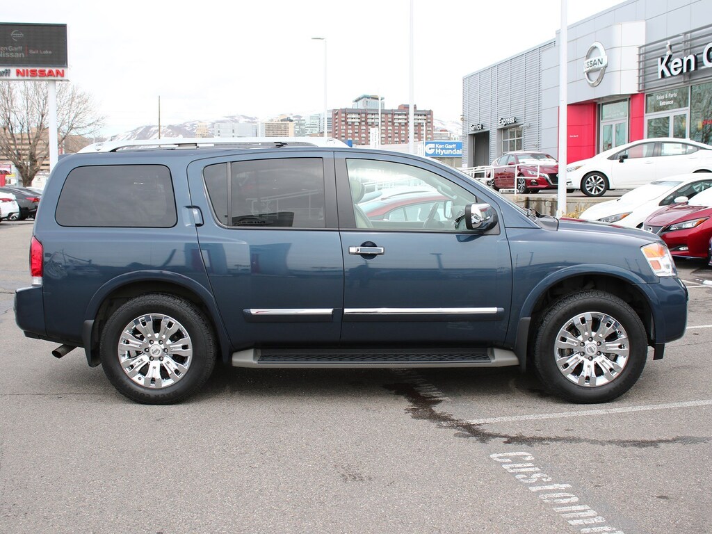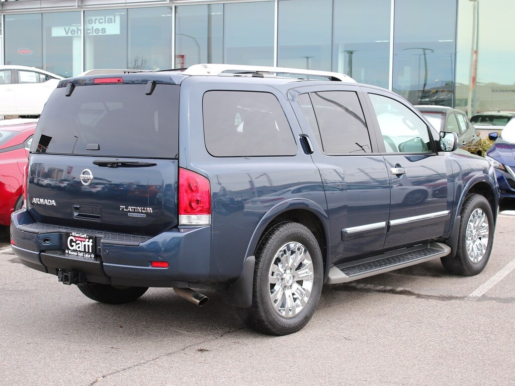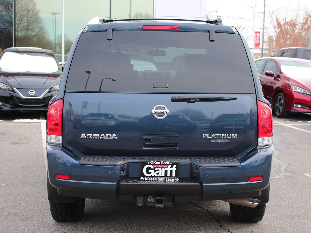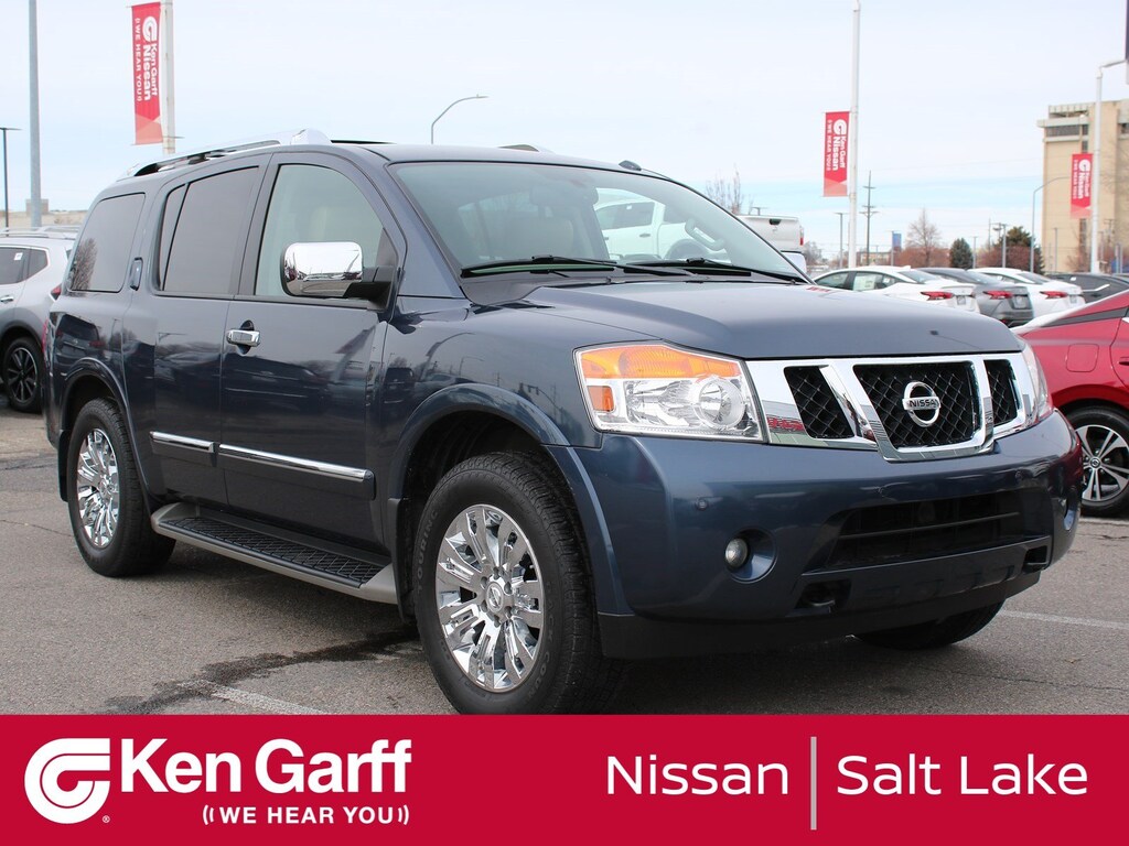 Non Smoker, Tow Hitch, One Owner, Ipod Jack, Backup Sensors, Clean Carfax, Bose Premium Sound, Nissan Build Quality, Super Low Miles, Heated Leather Seats, Moonroof / Sunroof, CLEAN CARFAX ONE OWNER VEHICLE!!, INCLUDES GARFF CARE!!, ALL WHEEL DRIVE!!, Back Up Camera, 4-Wheel Disc Brakes, ABS brakes, Anti-whiplash front head restraints, Dual front impact airbags, Dual front side impact airbags, Front anti-roll bar, Low tire pressure warning, Occupant sensing airbag, Overhead airbag, Rear anti-roll bar.Ken Garff Nissan of Salt Lake City is honored to offer this charming 2015 Nissan Armada. Platinum 4WDKen Garff Nissan Downtown continues to change in order to serve you better! We have brought together over 100 years of managment experience to provide you with an incredible Sales and Service experience! Car buying should be fun and exciting, and at Ken Garff Nissan Downtown we strive to do just that! Check us out and see we mean it when we say Ken Garff Nissan Backs U Up!Recent Arrival! 2015 Nissan Armada Platinum