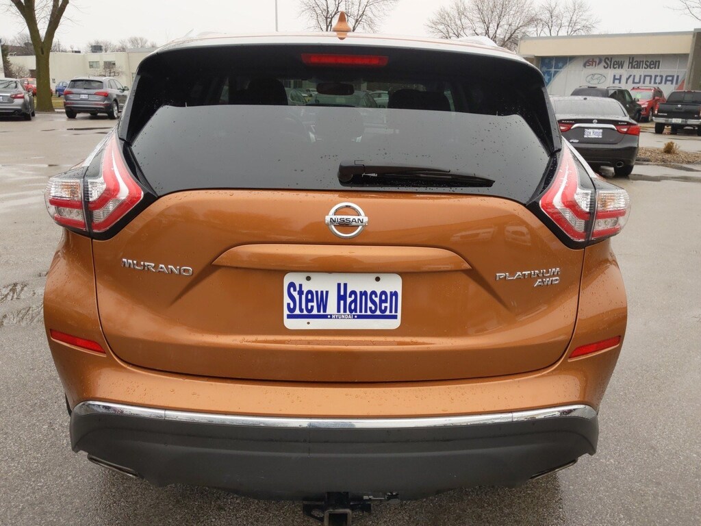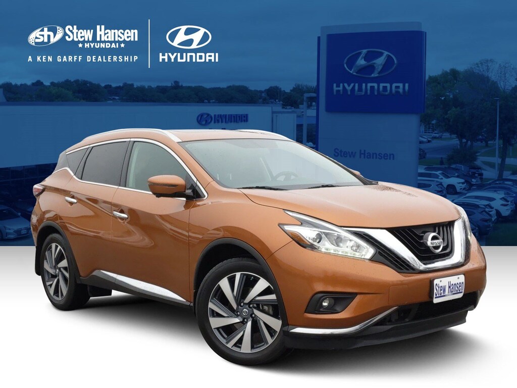 Pacific Sunset Metallic 2016 Nissan Murano Platinum AWD CVT with Xtronic 3.5L V6 DOHC AWD, Leather, Like New!!, SUNROOF / MOONROOF, CARFAX ONE OWNER, NON SMOKER, Heated Seats, Radio: AM/FM/CD Audio System w/Navigation.STEW HANSEN HYUNDAI UPFRONT PRICING MEANS NO HASSLE NO HAGGLE NO SURPRISES, JUST GREAT DEALS AND SUPER SERVICE. Recent Arrival! Odometer is 13327 miles below market average! 21/28 City/Highway MPGSTEW HANSEN HYUNDAI UPFRONT PRICING MEANS NO HASSLE NO HAGGLE NO SURPRISES, JUST GREAT DEALS AND SUPER SERVICE. PLEASE CALL OR STOP BY AND SEE WHY WE ARE ONE OF THE FASTEST GROWING DEALERS IN ALL OF THE MIDWEST.