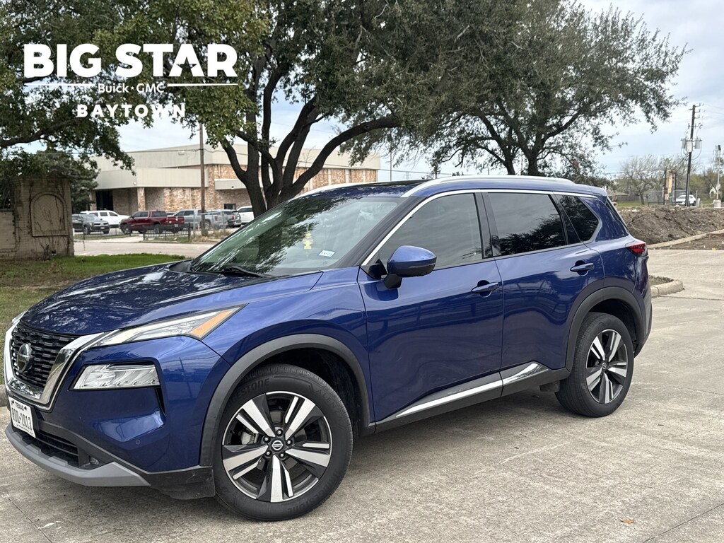120 Point Safety Inspection, 18 WHEELS, 19 Aluminum Alloy Wheels, 4-Wheel Disc Brakes, 5.604 Axle Ratio, 6 Speakers, ABS brakes, Air Conditioning, Alloy wheels, AM/FM Radio, AM/FM radio, Auto High-beam Headlights, Auto-dimming Rear-View mirror, Automatic temperature control, Black Splash Guards (Set of 4), BLUETOOTH / HANDSFREE, Bose Premium Audio System, Brake assist, Bumpers: body-color, Chrome Rear Bumper Protector, CLEAN CARFAX!, Delay-off headlights, Driver door bin, Driver vanity mirror, Dual front impact airbags, Dual front side impact airbags, Electronic Stability Control, Emergency communication system: NissanConnect Services, Exterior Parking Camera Rear, First Aid Kit, Floor Mats w/2-Piece Cargo Area Protector, Four wheel independent suspension, Front & Rear Sonar, Front anti-roll bar, Front Bucket Seats, Front Center Armrest, Front dual zone A/C, Front fog lights, Front reading lights, Fully automatic headlights, Heated door mirrors, Heated Front Bucket Seats, Heated front seats, Heated steering wheel, Illuminated entry, Knee airbag, Leather steering wheel, Leather-Appointed Seat Trim, LOCAL TRADE IN!, Low tire pressure warning, Memory seat, NAVIGATION, Navigation System, Nissan Door To Door Navigation, NissanConnect featuring Apple CarPlay and Android Auto, NON SMOKER VEHICLE, Occupant sensing airbag, Outside temperature display, Overhead airbag, Overhead console, Panic alarm, Passenger door bin, Passenger vanity mirror, Power door mirrors, Power driver seat, Power Liftgate, Power moonroof, Power passenger seat, Power steering, Power windows, Premium Package, PROFESSIONALLY DETAILED FOR DELIVERY!, ProPILOT Assist +, Radio data system, Rear air conditioning, Rear anti-roll bar, Rear Parking Sensors, Rear seat center armrest, Rear side impact airbag, Rear window defroster, Rear window wiper, Remote keyless entry, Roof rack: rails only, Security system, SiriusXM Traffic, Speed control, Speed-Sensitive Wipers, Split folding rear seat, Spoiler, Steering wheel mounted audio controls, SUNROOF/MOONROOF, SUPER LOW MILES!, Tachometer, Telescoping steering wheel, Tilt steering wheel, Traction control, Trip computer, Turn signal indicator mirrors, Variably intermittent wipers. Certified.Big Star Buick GMC is delighted to offer this superb-looking 2021 Nissan Rogue. SL FWD Caspian Blue Metallic CARFAX One-Owner.Odometer is 37136 miles below market average!Priced below KBB Fair Purchase Price!26/34 City/Highway MPGWhy should you buy from Big Star GMC Buick? Our unmatched service and diverse New and Used Buick, GMC, Cars and Trucks inventory have set us apart as the preferred dealer in Baytown. Visit us today to discover why we have the best reputation in the Baytown area. Advertised Prices do not include any dealer installed options and advertised prices exclude leases.