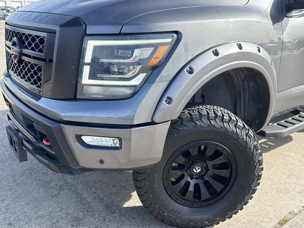 4WD, 110V Outlet in Bed, 120 Point Safety Inspection, 20 WHEELS, 3.692 Axle Ratio, 4-Way Power Assist Seat, 4-Wheel Disc Brakes, 6 Speakers, ABS brakes, Air Conditioning, All Season Floor Mats, Alloy wheels, AM/FM radio: SiriusXM, Auto High-beam Headlights, Auto-dimming Rear-View mirror, Auto-leveling suspension, Automatic temperature control, Bed Assist Grip, Blind Spot Warning, BLUETOOTH / HANDSFREE, Brake assist, CLEAN CARFAX!, Cloth Seat Trim w/Vinyl Bolsters, Compass, Delay-off headlights, Driver & Passenger Ventilated Front Seats, Driver door bin, Driver vanity mirror, Dual front impact airbags, Dual front side impact airbags, Dual Panel Panoramic Moonroof w/Tilt & Slide, Electronic Locking Tailgate, Electronic Stability Control, Emergency communication system: NissanConnect Services, Fender Premium Audio System w/12 Speakers, Front & Rear Parking Sensors, Front anti-roll bar, Front Bucket Seats, Front Captain's Seats, Front Center Armrest, Front dual zone A/C, Front fog lights, Front reading lights, Front wheel independent suspension, Fully automatic headlights, Garage door transmitter: HomeLink, Heated door mirrors, Heated Driver & Passenger Seat, Heated Power Tilt/Telescopic Steering Wheel, Heated Rear Seats, Illuminated entry, Intelligent Around View Monitor (I-AVM), Knee airbag, Leather Seat Trim, Leather steering wheel, LED Tailgate Area Illumination, LED Under Rail Bed Lighting, LOCAL TRADE IN!, Low tire pressure warning, Memory Driver Seat w/Auto Entry/Exit Feature, NAVIGATION, Navigation System, Navigation system: NissanConnect Navigation, NissanConnect featuring Apple CarPlay and Android Auto, NON SMOKER VEHICLE, Occupant sensing airbag, Off Road Protection Package, Outside temperature display, Overhead airbag, Overhead console, Panic alarm, Passenger door bin, Passenger vanity mirror, Power door mirrors, Power driver seat, Power Folding Auto Dimming Outside Mirrors, Power Sliding Rear Window w/Defogger, Power steering, Power windows, PRO-4X Badged Floor Mats (DISC), PRO-4X Convenience Package, PRO-4X Illuminated Kick Plate, PRO-4X Moonroof Package, PRO-4X Utility Package, Pro4X Mud Flaps, Pro4X Rugged Step Boards, PROFESSIONALLY DETAILED FOR DELIVERY!, Proximity Activation, Puddle Lamps, Radio data system, Radio: NissanConnect w/Navigation, Rain sensing wipers, Rear anti-roll bar, Rear Bumper Step w/Electronic Tailgate Lock, Rear Parking Sensors, Rear seat center armrest, Rear step bumper, Rear Utility Bed Step, Rear window defroster, Remote Engine Start on Key Fob, Remote keyless entry, Security system, Side Turn Signal Lamps on Mirror Housing, Speed control, Speed-sensing steering, Speed-Sensitive Wipers, Split folding rear seat, Steering wheel mounted audio controls, SUNROOF/MOONROOF, SUPER LOW MILES!, Tachometer, Telescoping steering wheel, Tilt steering wheel, Traction control, Trailer Brake Controller, Trailer Light Check Function On Key Fob, Trip computer, Utilitrack System w/4 Tie-Down Cleats, Variably intermittent wipers, Voltmeter, Wheels: 18 x 8 Painted Dark Finish Alloy. Certified.Big Star Buick GMC is honored to offer this gorgeous 2021 Nissan Titan. PRO-4X 4WD Gun Metallic CARFAX One-Owner.Why should you buy from Big Star GMC Buick? Our unmatched service and diverse New and Used Buick, GMC, Cars and Trucks inventory have set us apart as the preferred dealer in Baytown. Visit us today to discover why we have the best reputation in the Baytown area. Advertised prices exclude leases. Vehicle may or may not be equipped with vehicle protection products or accessories that are not required for purchase.