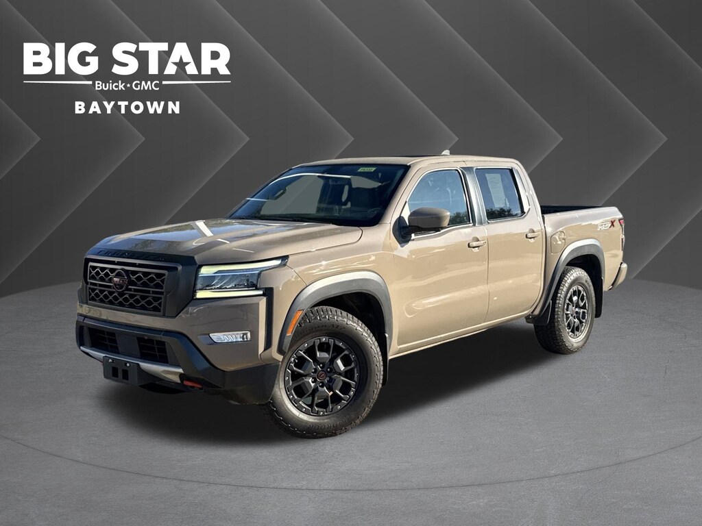 120 Point Safety Inspection, 120V Power Outlet in Bed, 120V Power Outlet in Rear Center Console, 17 Accessory Dark Beadlock Style Alloy Wheels, 17 Alloy Wheels, 18 WHEELS, 3.692 Axle Ratio, 4-Wheel Disc Brakes, 6 Speakers, ABS brakes, Air Conditioning, Alloy wheels, AM/FM radio: SiriusXM, Anti-whiplash front head restraints, Auto-Dimming Mirror, Auto-Tilt & Slide Sunroof w/Manual Shade, Automatic temperature control, Bed Under-Rail Lighting, Blind Spot Warning, BLUETOOTH / HANDSFREE, Brake assist, Bumpers: body-color, Carpeted Floor Mats, CLEAN CARFAX!, Delay-off headlights, Driver door bin, Driver vanity mirror, Dual Camera Drive Recorder, Dual front impact airbags, Dual front side impact airbags, Electronic Stability Control, Emergency communication system: NissanConnect Services, Fender Audio Package, Fender Premium Audio System w/10 Speakers, Front & Rear Leather Seat Trim (1st/2nd Rows), Front anti-roll bar, Front Bucket Seats, Front Center Armrest, Front dual zone A/C, Front fog lights, Front reading lights, Front wheel independent suspension, Fully automatic headlights, Heated Front Seats, Heated Outside Mirrors, Heated Steering Wheel, High Beam Assist (HBA), HomeLink UGDO, Illuminated entry, Intelligent Around View Monitor (I-AVM), Intelligent Cruise Control, Knee airbag, Lane Departure Warning System, Leather Shift Knob, LOCAL TRADE IN!, Low tire pressure warning, NAVIGATION, Navigation System, Navigation system: Nissan Navigation with Voice Recognition, NON SMOKER VEHICLE, Occupant sensing airbag, Overhead airbag, Overhead console, Panic alarm, Partial Under-Seat Storage Delete, Passenger door bin, Passenger vanity mirror, Power door mirrors, Power driver seat, Power steering, Power windows, PRO Convenience Package, PRO Embroidered Premium Cloth Seat Trim, PRO-X Mud Flaps, PRO-X Premium Package, PROFESSIONALLY DETAILED FOR DELIVERY!, Radio data system, Radio: SXM/AM/FM/AUX/USB Audio System w/6 Speakers, Rear anti-roll bar, Rear Automatic Braking (RAB), Rear Cross Traffic Alert (RCTA), Rear seat center armrest, Rear Sonar System, Rear step bumper, Remote Engine Starter, Remote keyless entry, Security system, Speed control, Speed-sensing steering, Split folding rear seat, Spray-In Bedliner, Steering wheel mounted audio controls, SUNROOF/MOONROOF, SUPER LOW MILES!, Tachometer, Technology Package, Tilt steering wheel, Tow Package: Hitch, Tow Harness, Traction control, Trailer Hitch w/Wiring Harness, Trip computer, Utili-Track System, Variably intermittent wipers, Voltmeter, Wireless Charging For Personal Devices. Clean CARFAX. Certified.Big Star Buick GMC is pumped up to offer this good-looking 2023 Nissan Frontier. PRO-X RWD Baja StormWhy should you buy from Big Star GMC Buick? Our unmatched service and diverse New and Used Buick, GMC, Cars and Trucks inventory have set us apart as the preferred dealer in Baytown. Visit us today to discover why we have the best reputation in the Baytown area. Advertised Prices do not include any dealer installed options and advertised prices exclude leases.