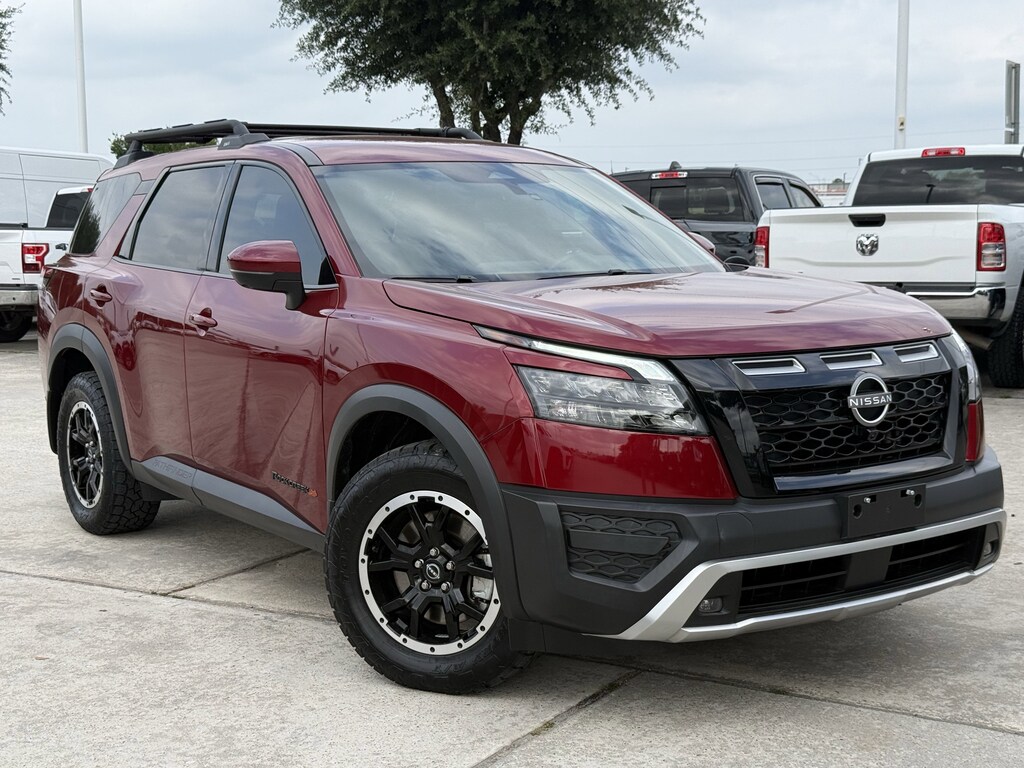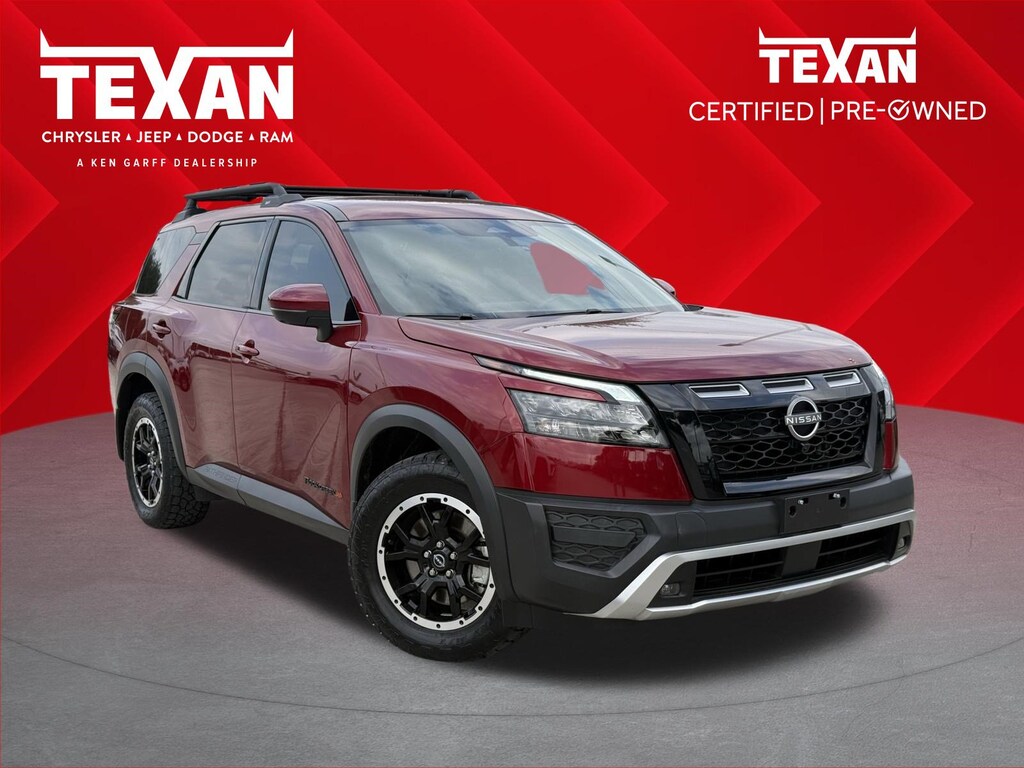 Clean CarFax!, Clean Vehicle History, Non Smoker Vehicle, LOCAL TRADE, LOW LOW MILES!!, ALL VEHICLES UNDERGO A 115 POINT SAFETY INSPECTION, Garff Certified Pre-Owned Certified, 4WD, 3rd row seats: bench, 4-Wheel Disc Brakes, 6 Speakers, ABS brakes, Air Conditioning, Alloy wheels, AM/FM radio: SiriusXM, Automatic temperature control, Black Splash Guards (Set of 4), Brake assist, Driver door bin, Driver vanity mirror, Dual front impact airbags, Dual front side impact airbags, Electronic Stability Control, Emergency communication system, Four wheel independent suspension, Front anti-roll bar, Front Bucket Seats, Front Center Armrest, Front dual zone A/C, Front reading lights, Heated door mirrors, Heated Front Bucket Seats, Heated front seats, Illuminated entry, Knee airbag, Leather steering wheel, Leatherette-Appointed Seating Surfaces, Low tire pressure warning, NissanConnect featuring Apple CarPlay and Android Auto, Occupant sensing airbag, Outside temperature display, Overhead airbag, Overhead console, Passenger door bin, Passenger vanity mirror, Power door mirrors, Power driver seat, Power steering, Power windows, Radio data system, Radio: AM/FM Audio System w/NissanConnect, Rear air conditioning, Rear anti-roll bar, Rear Parking Sensors, Rear reading lights, Rear side impact airbag, Rear window defroster, Reclining 3rd row seat, Remote keyless entry, Rock Creek AS Floor Liners & Cargo Area Protector, Rock Creek Roof Rack, Roof rack, Speed control, Speed-sensing steering, Split folding rear seat, Spoiler, Steering wheel mounted audio controls, Tachometer, Telescoping steering wheel, Tilt steering wheel, Traction control, Trip computer, Turn signal indicator mirrors, Wheels: 18 x 8J Machined Alloy w/Black Finish, Auto High-beam Headlights, Axle Ratio: 4.334, Delay-off headlights, Front fog lights, Fully automatic headlights, Panic alarm, Rear window wiper, Security system, Variably intermittent wipers, FULLY SERVICED, 1-OWNER, BLUETOOTH, GARFF CERTIFIED, 4WD, 3rd row seats: bench, 4-Wheel Disc Brakes, 6 Speakers, ABS brakes, Air Conditioning, Alloy wheels, AM/FM radio: SiriusXM, Automatic temperature control, Black Splash Guards (Set of 4), Brake assist, Driver door bin, Driver vanity mirror, Dual front impact airbags, Dual front side impact airbags, Electronic Stability Control, Emergency communication system, Four wheel independent suspension, Front anti-roll bar, Front Bucket Seats, Front Center Armrest, Front dual zone A/C, Front reading lights, Heated door mirrors, Heated Front Bucket Seats, Heated front seats, Illuminated entry, Knee airbag, Leather steering wheel, Leatherette-Appointed Seating Surfaces, Low tire pressure warning, NissanConnect featuring Apple CarPlay and Android Auto, Occupant sensing airbag, Outside temperature display, Overhead airbag, Overhead console, Passenger door bin, Passenger vanity mirror, Power door mirrors, Power driver seat, Power steering, Power windows, Radio data system, Radio: AM/FM Audio System w/NissanConnect, Rear air conditioning, Rear anti-roll bar, Rear Parking Sensors, Rear reading lights, Rear side impact airbag, Rear window defroster, Reclining 3rd row seat, Remote keyless entry, Rock Creek AS Floor Liners & Cargo Area Protector, Rock Creek Roof Rack, Roof rack, Speed control, Speed-sensing steering, Split folding rear seat, Spoiler, Steering wheel mounted audio controls, Tachometer, Telescoping steering wheel, Tilt steering wheel, Traction control, Trip computer, Turn signal indicator mirrors, Wheels: 18 x 8J Machined Alloy w/Black Finish. CARFAX One-Owner. Odometer is 8580 miles below market average!Texan Dodge Chrysler Jeep Ram is excited to offer this handsome 2024 Nissan Pathfinder Rock Creek.In addition to transparent, no hassle pricing and upfront no hassle trade evaluation.....We provide an enjoyably brief and easy Sales Experience...Your Pace...Your Way....CONTACT US AT (281)359-7100 Advertised prices exclude leases. Vehicle may or may not be equipped