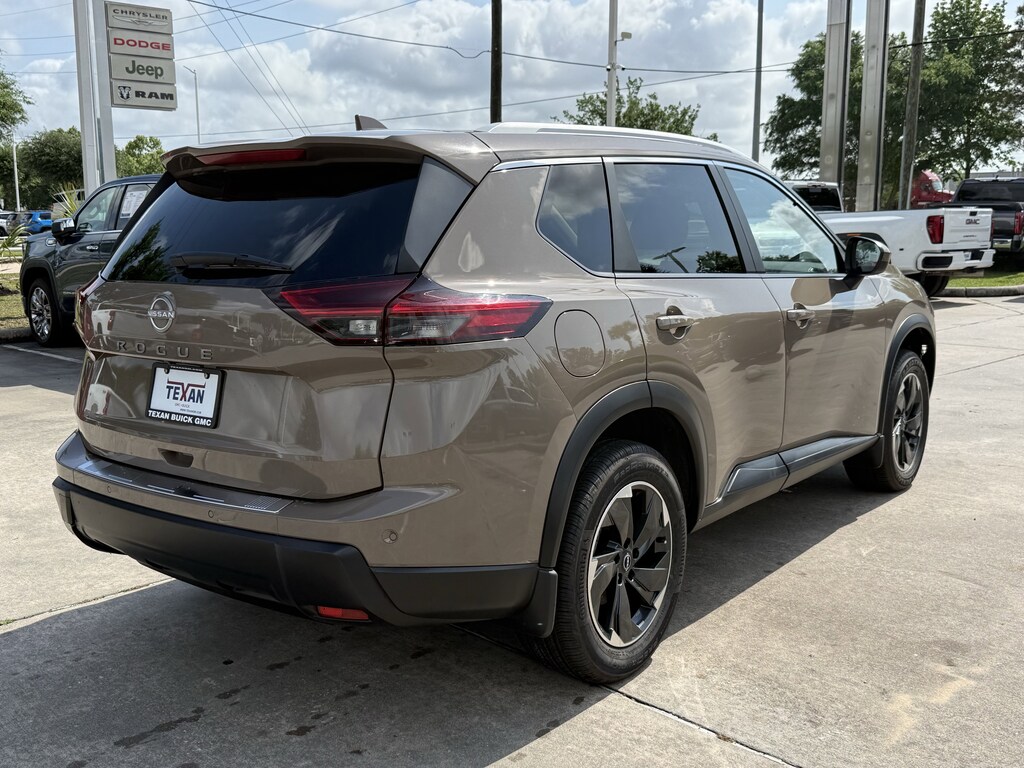 Recent Arrival! 4-Wheel Disc Brakes, 6 Speakers, ABS brakes, Air Conditioning, Alloy wheels, AM/FM radio: SiriusXM, Android Auto and Apple CarPlay, Auto High-beam Headlights, Automatic temperature control, Black Splash Guards (set of 4), Brake assist, Bumpers: body-color, Chrome Rear Bumper Protector, Cloth Seat Trim with Patterned Inserts, Delay-off headlights, Driver door bin, Driver vanity mirror, Dual front impact airbags, Dual front side impact airbags, Electronic Stability Control, Emergency communication system: NissanConnect Services, First Aid Kit, Floor Mats with 1-Piece Cargo Area Protector, Four wheel independent suspension, Front anti-roll bar, Front Bucket Seats, Front Bucket Seats with 8-Way Power Driver Seat, Front Center Armrest, Front dual zone A/C, Front reading lights, Fully automatic headlights, Heated door mirrors, Heated Front Seats, Heated Steering Wheel, Illuminated entry, Knee airbag, Leatherette Door Trim Inserts with Stitch, Low tire pressure warning, Occupant sensing airbag, Outside temperature display, Overhead airbag, Overhead console, Panic alarm, Panoramic Moonroof, Passenger door bin, Passenger vanity mirror, Power door mirrors, Power driver seat, Power Liftgate, Power steering, Power windows, Premium Paint, Prima-Tex Leatherette Seat Trim, Radio data system, Radio: NissanConnect with 6 Speakers, Rear anti-roll bar, Rear Door Sunshades, Rear Personal Lights, Rear seat center armrest, Rear side impact airbag, Rear window defroster, Rear window wiper, Remote keyless entry, Silver Painted Roof Rails, Speed control, Speed-sensing steering, Speed-Sensitive Wipers, Split folding rear seat, Spoiler, Steering wheel mounted audio controls, SV Premium Package, Tachometer, Telescoping steering wheel, Tilt steering wheel, Traction control, Trip computer, Variably intermittent wipers, Wheels: 18 Dark Painted Machine Finished Alloy.Texan GMC Buick is pumped up to offer this attractive-looking 2025 Nissan Rogue SV. FWD Baja Storm MetallicCertified. Odometer is 15486 miles below market average! 30/37 City/Highway MPGPriced below KBB Fair Purchase Price!Service Loaners...Free WiFi.....Business Center....Roadside Assistance...All Included!! Our Mission: To be the most esteemed automotive group in the eyes of our employees, customers, and partners. Our Promise: We listen and provide a trusted, easy, and enjoyable experience. Our Philosophy: We create lifetime customers. Advertised prices exclude leases. Vehicle may or may not be equipped with vehicle protection products or accessories that are not required for purchase.