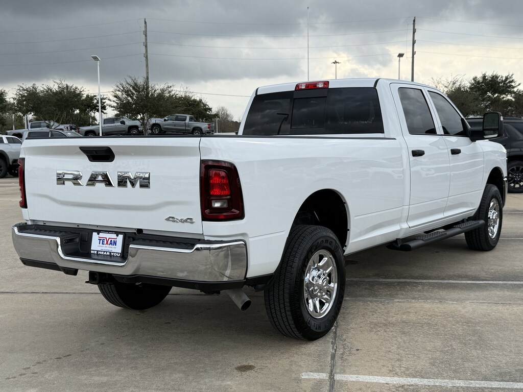 Clean CarFax!, Clean Vehicle History, Non Smoker Vehicle, LOCAL TRADE, LOW LOW MILES!!, ALL VEHICLES UNDERGO A 115 POINT SAFETY INSPECTION, Carfax 1 Owner, 115V Auxiliary Front Power Outlet, 12 Touchscreen Display, 2 Way Rear Headrest Seat, 3.73 Axle Ratio, 4 Way Front Headrests, 4-Wheel Disc Brakes, 40/20/40 Split Bench Seat, 400W Inverter, 4G LTE Wi-Fi Hot Spot, 6 Speakers, ABS brakes, Air Conditioning ATC w/Dual Zone Control, Alexa Built-In, AM/FM radio: SiriusXM, Anti-Spin Differential Rear Axle, Apple CarPlay/Android Auto, Auto-Dimming Rear-View Mirror, Black Exterior Mirrors, Brake assist, Bright Front Bumper, Bright Rear Bumper, Carpet Floor Covering, Center Hub, Chrome Grille Surround, Cloth 40/20/40 Bench Seat, Commercial Features Package, Connected Travel & Traffic Services, Connectivity - US/Canada, Delay-off headlights, Disassociated Touchscreen Display, Dual front impact airbags, Dual front side impact airbags, Electronic Stability Control, Emergency Vehicle Alert System (EVAS), Exterior 115V AC Outlet, Exterior Mirrors Courtesy Lamps, Exterior Mirrors w/Heating Element, Exterior Mirrors w/Supplemental Signals, Front & Rear Floor Mats, Front anti-roll bar, Front Armrest w/Cupholders, Front Center Armrest w/Storage, Front fog lights, Front reading lights, Fully automatic headlights, Global Telematics Box Module (TBM), Google Android Auto, GPS Antenna Input, GPS Navigation, HD Radio, Heavy Duty Vinyl 40/20/40 Split Bench Seat, Illuminated entry, Integrated Voice Command w/Bluetooth, Low tire pressure warning, Manual Adjust 4-Way Driver Seat, Manual Adjust 4-Way Front Passenger Seat, Manual Folding Exterior Mirrors, Manual Telescoping Mirrors, Matte Black Mesh Grille w/Chrome, Mirror Running Lights, Mopar Black Tubular Side Steps, Occupant sensing airbag, Off-Road Info Pages, Overhead airbag, Panic alarm, ParkSense Front/Rear Park Assist System, ParkView Rear Back-Up Camera, Passenger door bin, Power Adjust Mirrors, Power Adjustable Convex Aux Mirrors, Power Heated Folding Telescope Mirrors, Quick Order Package 2UA Tradesman, Radio: Uconnect 5 Nav w/12.0 Display, Rear anti-roll bar, Rear Folding Seat, Rear Power Sliding Window, Rear step bumper, Remote USB Port - Charge Only, Selectable Tire Fill Alert, SiriusXM Radio Service, SiriusXM w/360L, Speed control, Storage Tray, Tilt steering wheel, Tinted Acoustic Windshield Glass, Traction control, Tradesman Level 2 Equipment Group, Trailer Tow Pages, Variably intermittent wipers, Wheels: 18 x 8.0 Steel Chrome Clad. CARFAX One-Owner.Texan Dodge Chrysler Jeep Ram is delighted to offer this superb-looking 2025 Ram 2500 Tradesman.In addition to transparent, no hassle pricing and upfront no hassle trade evaluation.....We provide an enjoyably brief and easy Sales Experience...Your Pace...Your Way....CONTACT US AT (281)359-7100 Advertised Prices do not include any dealer installed options and advertised prices exclude leases.