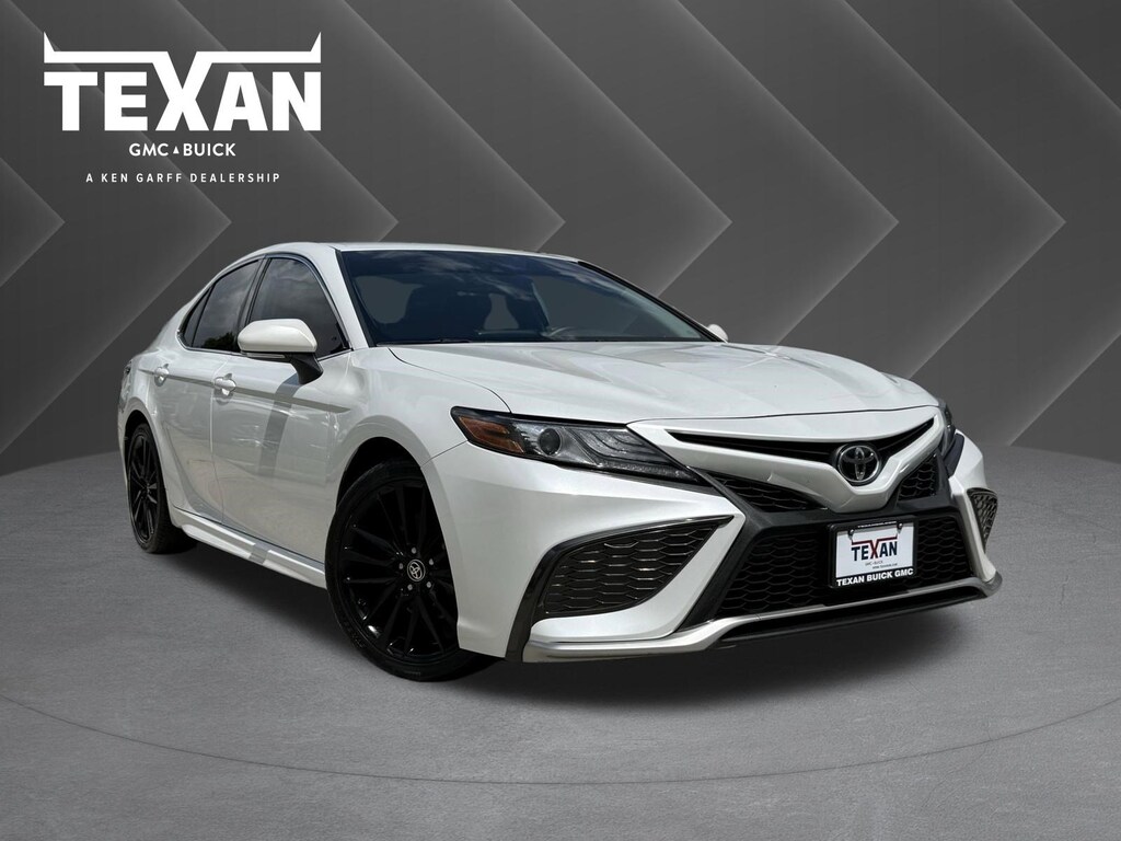 Recent Arrival! 4-Wheel Disc Brakes, 6 Speakers, ABS brakes, Air Conditioning, Alloy wheels, AM/FM radio: SiriusXM, Apple CarPlay/Android Auto, Auto High-beam Headlights, Auto-dimming Rear-View mirror, Automatic temperature control, Brake assist, Bumpers: body-color, Delay-off headlights, Driver door bin, Driver vanity mirror, Dual front impact airbags, Dual front side impact airbags, Electronic Stability Control, Emergency communication system: Safety Connect with 1-year trial, Exterior Parking Camera Rear, Four wheel independent suspension, Front anti-roll bar, Front Bucket Seats, Front Center Armrest, Front dual zone A/C, Front reading lights, Fully automatic headlights, Garage door transmitter: HomeLink, Heated door mirrors, Heated front seats, Illuminated entry, Knee airbag, Low tire pressure warning, Multi-Stage Heated Front Bucket Seats, Occupant sensing airbag, Outside temperature display, Overhead airbag, Overhead console, Panic alarm, Passenger door bin, Passenger vanity mirror, Perforated Leather Seat Trim, Power door mirrors, Power driver seat, Power passenger seat, Power steering, Power windows, Radio data system, Radio: AM/FM/HD Audio Plus, Rear anti-roll bar, Rear reading lights, Rear seat center armrest, Rear side impact airbag, Rear window defroster, Remote keyless entry, Security system, Speed control, Speed-sensing steering, Split folding rear seat, Spoiler, Steering wheel mounted audio controls, Tachometer, Telescoping steering wheel, Tilt steering wheel, Traction control, Trip computer, Turn signal indicator mirrors, Variably intermittent wipers, Wheels: 8.0J x 19 Black Machined-Finish Alloy.Texan GMC Buick is very proud to offer this outstanding 2021 Toyota Camry XSE. FWD PearlOdometer is 12783 miles below market average! 27/38 City/Highway MPGPriced below KBB Fair Purchase Price!Service Loaners...Free WiFi.....Business Center....Roadside Assistance...All Included!! Our Mission: To be the most esteemed automotive group in the eyes of our employees, customers, and partners. Our Promise: We listen and provide a trusted, easy, and enjoyable experience. Our Philosophy: We create lifetime customers. Advertised prices exclude leases. Vehicle may or may not be equipped with vehicle protection products or accessories that are not required for purchase.