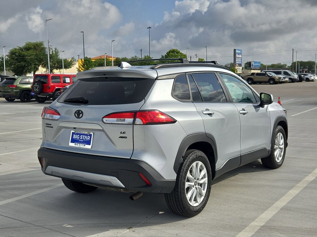 The 2022 Toyota Corolla Cross LE is a compact SUV that offers a perfect blend of style, capability, and advanced technology. This all-wheel-drive model boasts an impressive 2.0L I4 engine that delivers 169 horsepower, providing the power and efficiency you need for your daily commute and weekend adventures.With a sleek silver exterior and an array of premium features, this Corolla Cross LE is a standout in its class. Key highlights include:- CARFAX One Owner- All Weather Floor/Cargo Liner (TMS)- Black Badges Package (TMS)- Cross Bars (TMS)- Door Sill Protectors (TMS)- Alloy Wheel Locks (TMS)The Corolla Cross LE also comes equipped with a host of advanced safety features, including Automatic High-Beam Headlights, Rear Camera, and a comprehensive suite of airbags for your peace of mind. Enjoy the convenience of Apple CarPlay and Android Auto integration, as well as the comfort of Automatic Climate Control and a Leather-Wrapped Steering Wheel.This vehicle has been meticulously cared for and is CARFAX certified, giving you the confidence of a clean history and the assurance of a reliable, well-maintained ride. With an EPA-estimated 29 MPG in the city and 32 MPG on the highway, the Corolla Cross LE delivers impressive fuel efficiency to keep you on the road longer.Whether you're commuting to the office or embarking on a weekend getaway, this 2022 Toyota Corolla Cross LE is the perfect companion. Its spacious interior, versatile cargo area, and advanced technology features make it an exceptional value in the compact SUV segment.We invite you to experience the Corolla Cross LE for yourself. Schedule a test drive today and discover the exceptional quality, performance, and convenience that this vehicle has to offer. At our dealership, we are committed to providing you with an exceptional shopping experience and helping you find the perfect vehicle to fit your lifestyle.