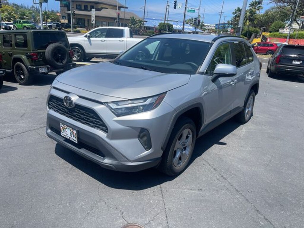 Silver Sky Metallic 2022 Toyota RAV4 XLE AWD 8-Speed Automatic 2.5L 4-Cylinder DOHC Dual VVT-i AWD, Black Cloth, 4-Wheel Disc Brakes, 6 Speakers, ABS brakes, Air Conditioning, Alloy wheels, AM/FM radio: SiriusXM, AM/FM Stereo, Apple CarPlay/Android Auto, Auto High-beam Headlights, Automatic temperature control, Axle Ratio: 3.177, Brake assist, Bumpers: body-color, Carpet Cargo Mat, Carpet Floor Mats, Carpet Mat Package (TMS), Delay-off headlights, Driver door bin, Driver vanity mirror, Dual front impact airbags, Dual front side impact airbags, Electronic Stability Control, Emergency communication system: Safety Connect with 1-year trial, Exterior Parking Camera Rear, Fabric Seat Trim, Four wheel independent suspension, Front anti-roll bar, Front Bucket Seats, Front Center Armrest, Front dual zone A/C, Front reading lights, Fully automatic headlights, Heated door mirrors, Illuminated entry, Knee airbag, Low tire pressure warning, Occupant sensing airbag, Outside temperature display, Overhead airbag, Overhead console, Panic alarm, Passenger door bin, Passenger vanity mirror, Power door mirrors, Power driver seat, Power steering, Power windows, Radio data system, Rear anti-roll bar, Rear seat center armrest, Rear window defroster, Rear window wiper, Remote keyless entry, Roof rack: rails only, Speed control, Speed-sensing steering, Split folding rear seat, Spoiler, Steering wheel mounted audio controls, Tachometer, Telescoping steering wheel, Tilt steering wheel, Traction control, Trip computer, Turn signal indicator mirrors, Variably intermittent wipers, Wheels: 17" 5-Spoke Silver Alloy, AWD, Black Cloth.