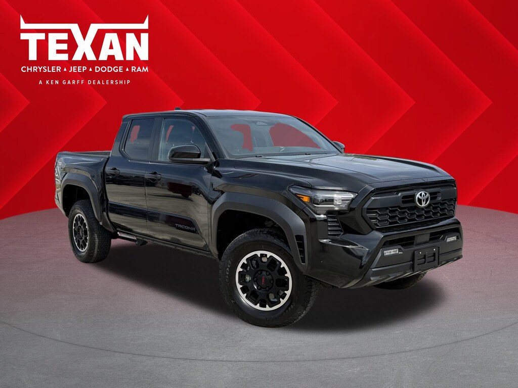 Clean CarFax!, Clean Vehicle History, Non Smoker Vehicle, ALL VEHICLES UNDERGO A 115 POINT SAFETY INSPECTION, Carfax 1 Owner, 4WD, 3.583 Axle Ratio, 4-Wheel Disc Brakes, 6 Speakers, ABS brakes, AM/FM radio: SiriusXM, Anti-whiplash front head restraints, Apple CarPlay/Android Auto, Auto High-beam Headlights, Auto-dimming Rear-View mirror, Automatic temperature control, Brake assist, Bumpers: body-color, Driver door bin, Driver vanity mirror, Dual front impact airbags, Dual front side impact airbags, Electronic Stability Control, Emergency communication system: Safety Connect (1-year trial), Exterior Parking Camera Rear, Fabric Seat Trim (FD), Four wheel independent suspension, Front anti-roll bar, Front Bucket Seats, Front Center Armrest, Front fog lights, Fully automatic headlights, Heated door mirrors, Illuminated entry, Knee airbag, Low tire pressure warning, Occupant sensing airbag, Outside temperature display, Overhead airbag, Overhead console, Panic alarm, Power door mirrors, Radio: 8 Toyota Audio Multimedia, Rear step bumper, Remote keyless entry, Security system, Speed control, Speed-sensing steering, Split folding rear seat, Steering wheel mounted audio controls, Telescoping steering wheel, Tilt steering wheel, Traction control, TRD Off Road Package, Turn signal indicator mirrors, Variably intermittent wipers, Wheels: 17 TRD Off-Road Alloy. CARFAX One-Owner. Priced below KBB Fair Purchase Price!Texan Dodge Chrysler Jeep Ram is delighted to offer this tremendous, reliable 2024 Toyota Tacoma TRD Off-Road.In addition to transparent, no hassle pricing and upfront no hassle trade evaluation.....We provide an enjoyably brief and easy Sales Experience...Your Pace...Your Way....CONTACT US AT (281)359-7100 Advertised Prices do not include any dealer installed options and advertised prices exclude leases.