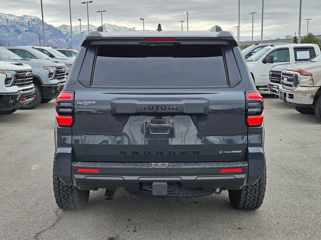 Ken Garff Chevrolet is very proud to offer this fantastic 2025 Toyota 4Runner i-FORCE MAX Hybrid. Conquer every trail with the TRD Off-Road a rugged SUV built for adventure and modern efficiency. The hybrid powertrain combines muscle and fuel economy for confident highway commuting and capable off-road performance. With TRD Off-Road suspension, all-terrain tires, and advanced traction control, this 4Runner is ready for dirt, snow, or gravel. Inside, enjoy modern techlike touchscreen infotainment, driver assists, and comfortable seatswrapped in a tough but refined cabin. Perfect for outdoor lovers who want toughness, versatility, and eco-conscious power.Clean Carfax One Owner!Includes GarffCare! (Complimentary Towing along Wasatch Front, Roadside Assistance, Complimentary Annual State Safety Inspection, Flat Tire Repair, and Car Wash with every Service Visit)Recent Arrival! 2025 Toyota 4Runner i-FORCE MAX Hybrid TRD Off Road