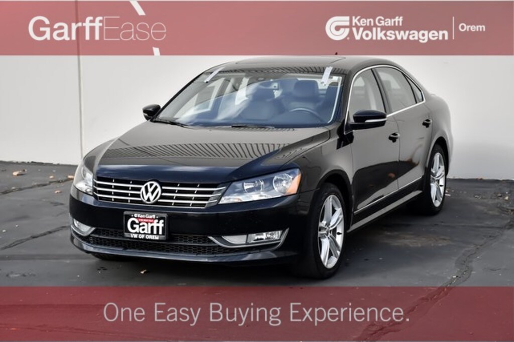 Clean Carfax One-Owner. Black 2014 Volkswagen Passat TDI SEL Premium! 2.0L Turbo Diesel! Heated Vienna Leather/Dynamica Seats! RNS 510 Touch Screen Radio with Bluetooth Connectivity! Dual Climate Control! Fender Sound System! Keyless Entry with Push Button Start! 18" Bristol Alloy Wheels!