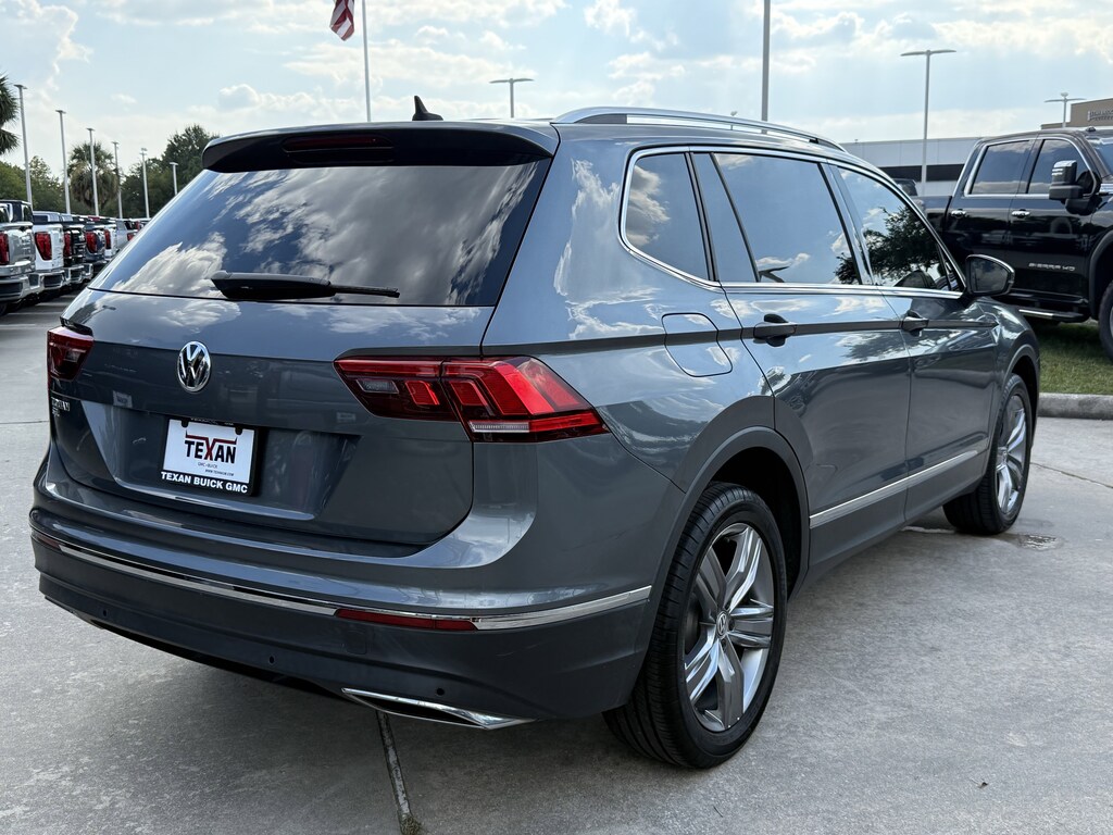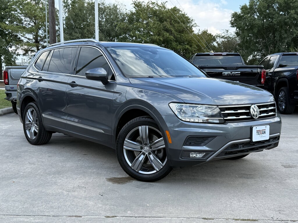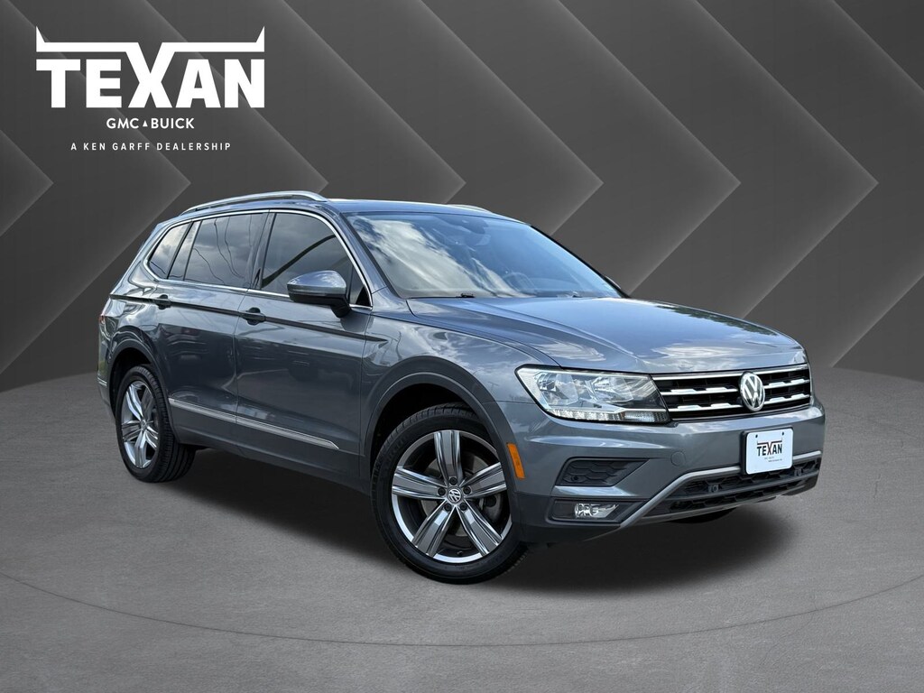 3.33 Axle Ratio, 3rd row seats: bench, 4-Wheel Disc Brakes, 4-Wheel Independent Suspension, 6 Speakers, ABS brakes, Air Conditioning, Alloy wheels, AM/FM radio: SiriusXM, Auto-dimming Rear-View mirror, Automatic temperature control, Brake assist, Bumpers: body-color, Compass, Delay-off headlights, Driver door bin, Driver vanity mirror, Dual front impact airbags, Dual front side impact airbags, Electronic Stability Control, Emergency communication system: VW Car-Net services (capabilities require enrollment or subscription), Exterior Parking Camera Rear, Forward collision: FCW w/Autonomous Emergency Braking mitigation, Four wheel independent suspension, Front anti-roll bar, Front Bucket Seats, Front Center Armrest, Front dual zone A/C, Front fog lights, Front reading lights, Fully automatic headlights, Heated door mirrors, Heated Front Comfort Seats, Heated front seats, Heated steering wheel, Illuminated entry, Lane Departure Warning System, Leather Shift Knob, Low tire pressure warning, Navigation system: VW Car-Net Guide & Inform, Occupant sensing airbag, Outside temperature display, Overhead airbag, Overhead console, Panic alarm, Passenger door bin, Passenger vanity mirror, Perforated V-Tex Leatherette Seating Surfaces, Power door mirrors, Power driver seat, Power Liftgate, Power moonroof, Power steering, Power windows, Radio data system, Radio: Discover Media AM/FM/HD, Rain sensing wipers, Rear anti-roll bar, Rear reading lights, Rear seat center armrest, Rear window defroster, Rear window wiper, Remote keyless entry, Roof rack: rails only, Security system, Speed control, Speed-sensing steering, Split folding rear seat, Spoiler, Steering wheel mounted audio controls, Tachometer, Telescoping steering wheel, Tilt steering wheel, Traction control, Trip computer, Turn signal indicator mirrors, Variably intermittent wipers, VW App-Connect (w/Apple CarPlay, Android Auto & MirrorLink), Wheels: 19 5-Spoke Gray Alloy.Texan GMC Buick is pleased to offer this beautiful-looking 2020 Volkswagen Tiguan 2.0T SEL. FWD Platinum Gray MetallicCertified. 22/29 City/Highway MPGPriced below KBB Fair Purchase Price!Service Loaners...Free WiFi.....Business Center....Roadside Assistance...All Included!! Our Mission: To be the most esteemed automotive group in the eyes of our employees, customers, and partners. Our Promise: We listen and provide a trusted, easy, and enjoyable experience. Our Philosophy: We create lifetime customers. Advertised Prices do not include any dealer installed options and advertised prices exclude leases.