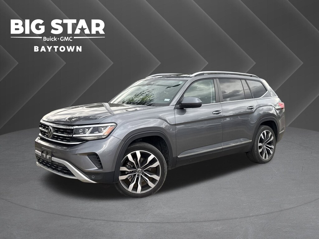 120 Point Safety Inspection, 20 WHEELS, 3.60 Axle Ratio, 3rd row seats: split-bench, 4-Wheel Disc Brakes, 6 Speakers, ABS brakes, Air Conditioning, Alloy wheels, AM/FM radio: SiriusXM with 360L, Auto High-beam Headlights, Auto-dimming Rear-View mirror, Automatic temperature control, BLUETOOTH / HANDSFREE, Brake assist, Bumpers: body-color, CLEAN CARFAX!, Compass, Delay-off headlights, Driver door bin, Driver vanity mirror, Dual front impact airbags, Dual front side impact airbags, Electronic Stability Control, Emergency communication system, Exterior Parking Camera Rear, Four wheel independent suspension, Front anti-roll bar, Front Bucket Seats, Front Center Armrest, Front dual zone A/C, Front fog lights, Front reading lights, Fully automatic headlights, Heated Comfort Front Bucket Seats, Heated door mirrors, Heated front seats, Heated steering wheel, Illuminated entry, Leather Shift Knob, LOCAL TRADE IN!, Low tire pressure warning, Memory seat, NAVIGATION, Navigation System, NON SMOKER VEHICLE, Occupant sensing airbag, Outside temperature display, Overhead airbag, Overhead console, Panic alarm, Passenger door bin, Passenger vanity mirror, Perforated V-Tex Leatherette Seating Surfaces, Power door mirrors, Power driver seat, Power Liftgate, Power moonroof: Panoramic, Power passenger seat, Power steering, Power windows, PROFESSIONALLY DETAILED FOR DELIVERY!, Radio data system, Radio: MIB3 Discover Media w/8 Touchscreen Nav, Rain sensing wipers, Rear air conditioning, Rear anti-roll bar, Rear reading lights, Rear seat center armrest, Rear window defroster, Rear window wiper, Remote keyless entry, Roof rack: rails only, Security system, Speed control, Speed-sensing steering, Split folding rear seat, Spoiler, Standard Suspension, Steering wheel mounted audio controls, SUNROOF/MOONROOF, SUPER LOW MILES!, Tachometer, Telescoping steering wheel, Tilt steering wheel, Traction control, Trip computer, Turn signal indicator mirrors, Variably intermittent wipers, Wheels: 20 x 8J 5-Spoke 2-Tone Machined Alloy. Certified.Big Star Buick GMC is honored to offer this superb-looking 2022 Volkswagen Atlas. SEL AWD Platinum Gray MetallicWhy should you buy from Big Star GMC Buick? Our unmatched service and diverse New and Used Buick, GMC, Cars and Trucks inventory have set us apart as the preferred dealer in Baytown. Visit us today to discover why we have the best reputation in the Baytown area. Advertised Prices do not include any dealer installed options and advertised prices exclude leases.